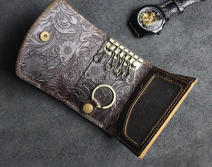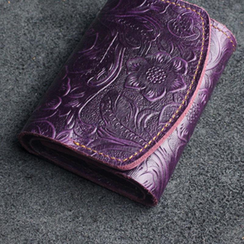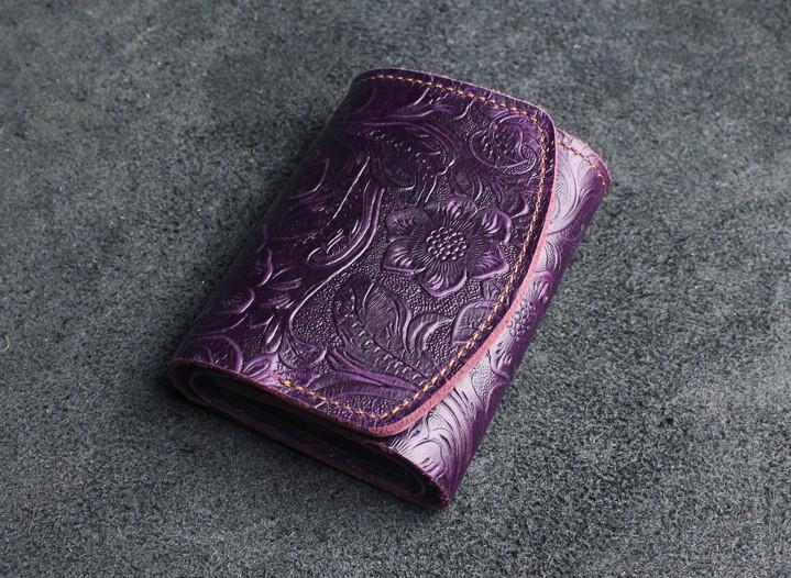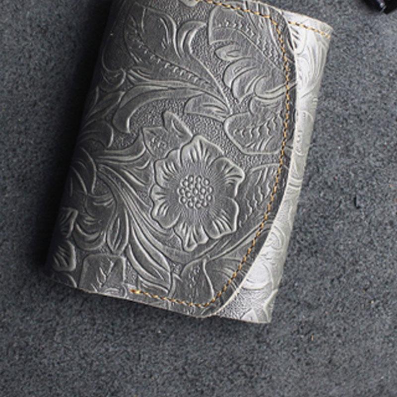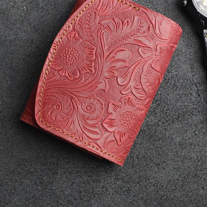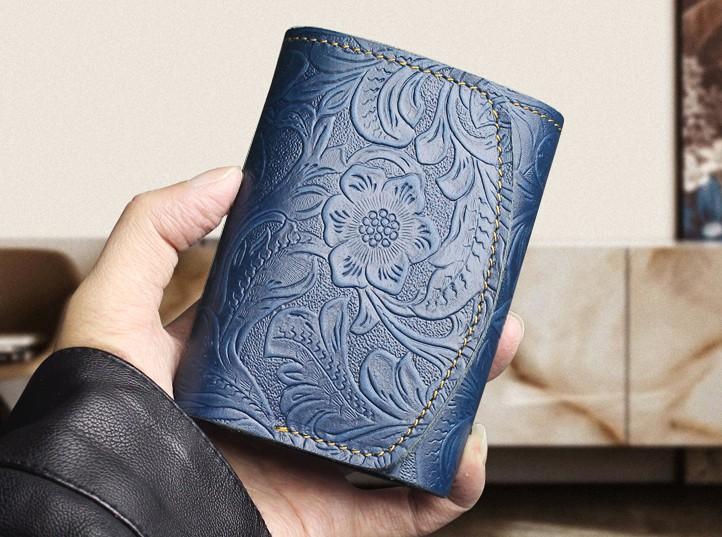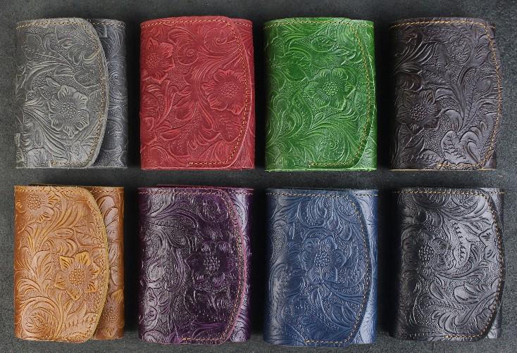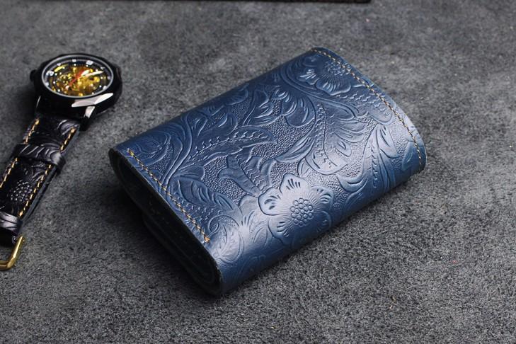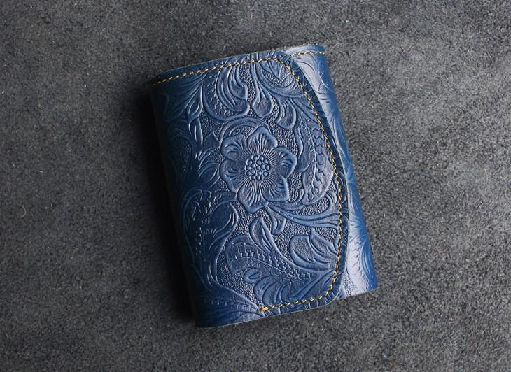 Design: Handmade Leather Floral Mens Trifold Cool billfold Wallet Card Holder Small Card Slim Wallets for Men