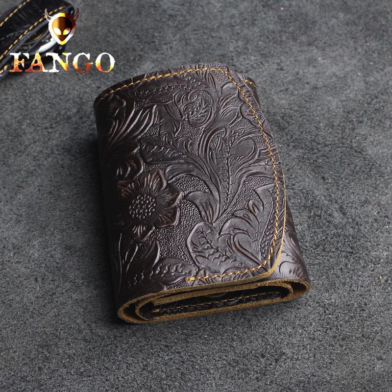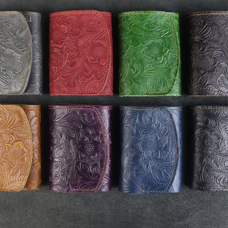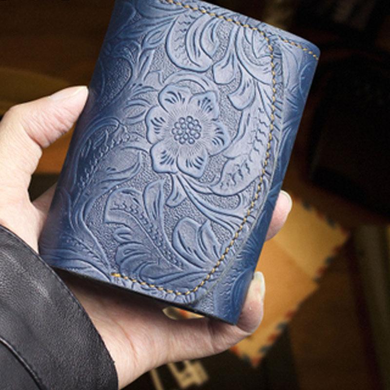 Handmade Leather Floral Mens Trifold Cool billfold Wallet Card Holder Small Card Slim Wallets for Men