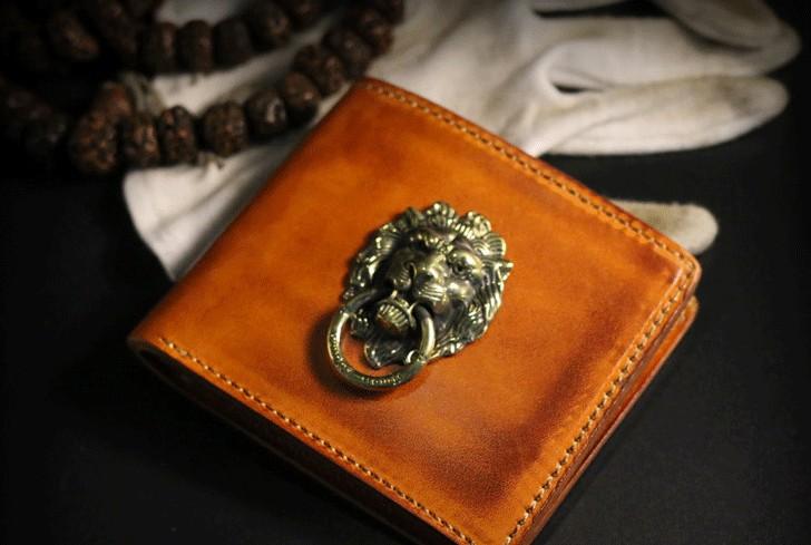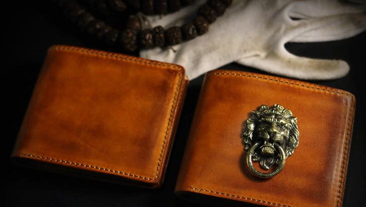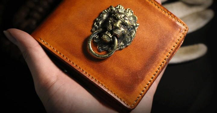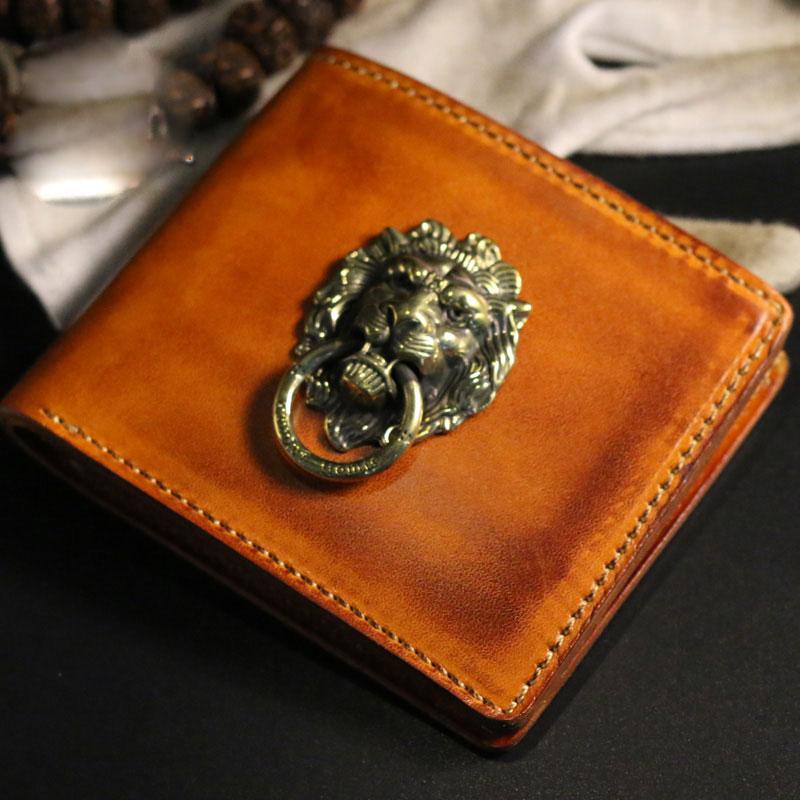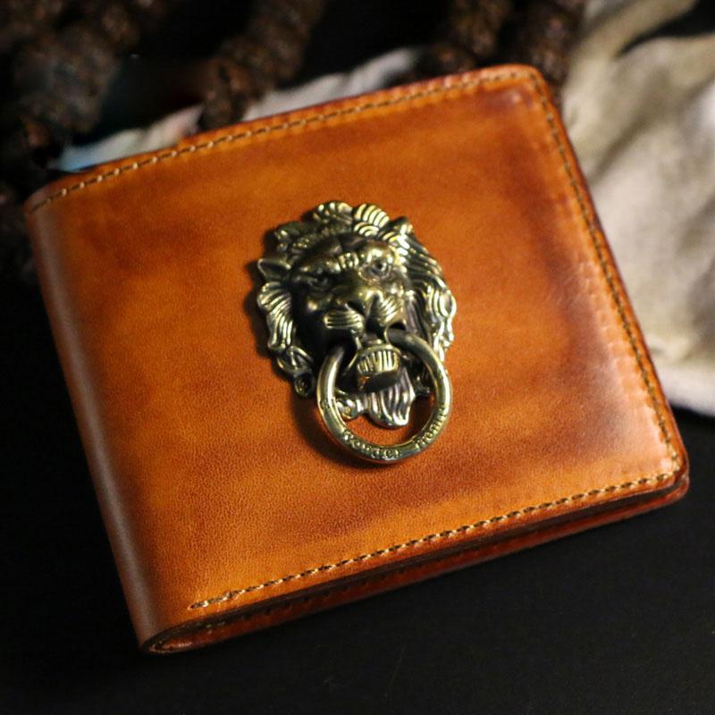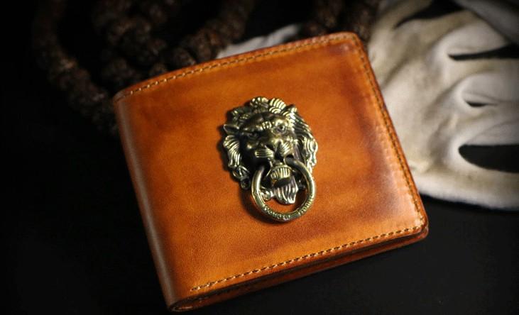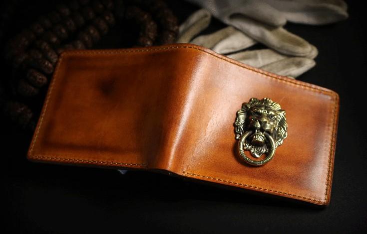 Handmade Leather Lion Mens billfold Wallet Cool Leather Wallet Slim Wallet for Men