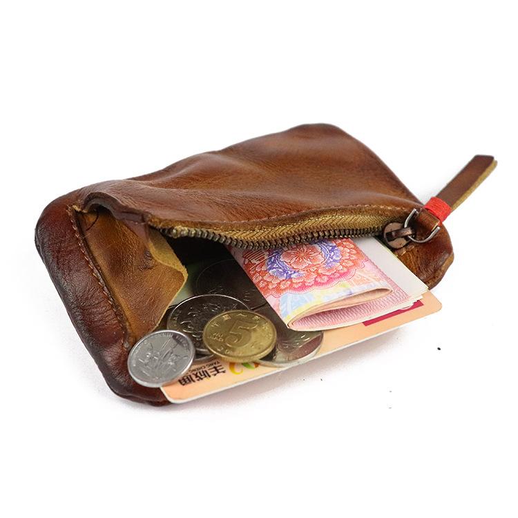 Style: Vintage Leather Men's Zipper Small Wallet Coin Wallet Coin Holder for Men