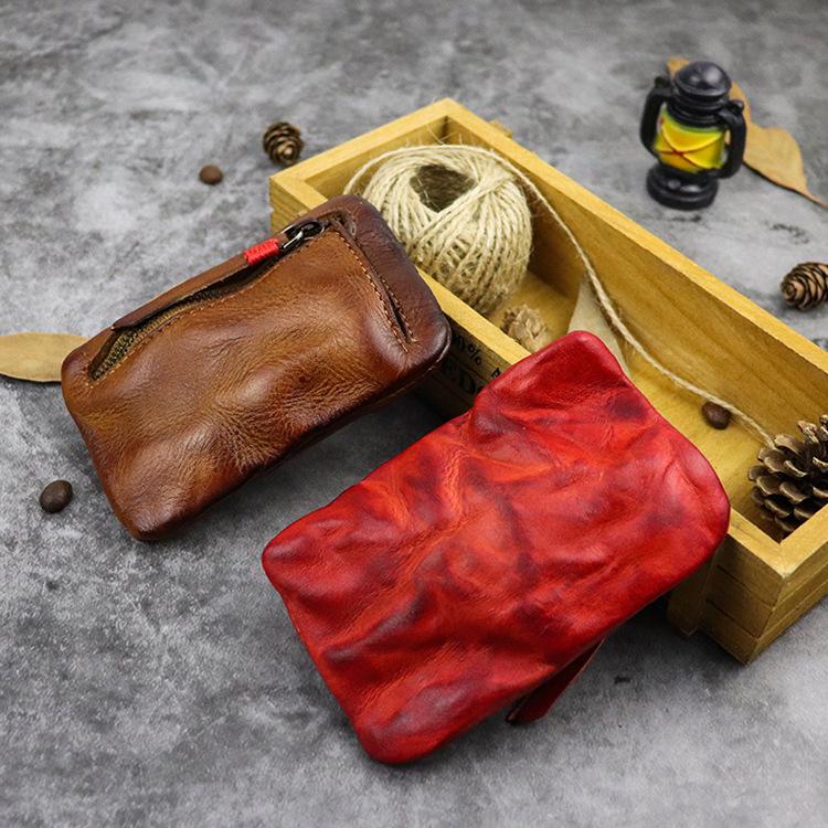 Design: Vintage Leather Men's Zipper Small Wallet Coin Wallet Coin Holder for Men