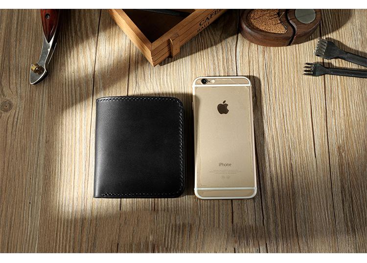 Style: Handmade Black Leather Mens Billfold Wallets Personalize Black Bifold Small Wallets for Men