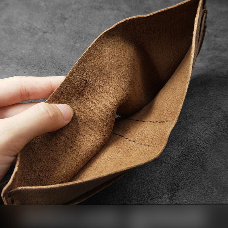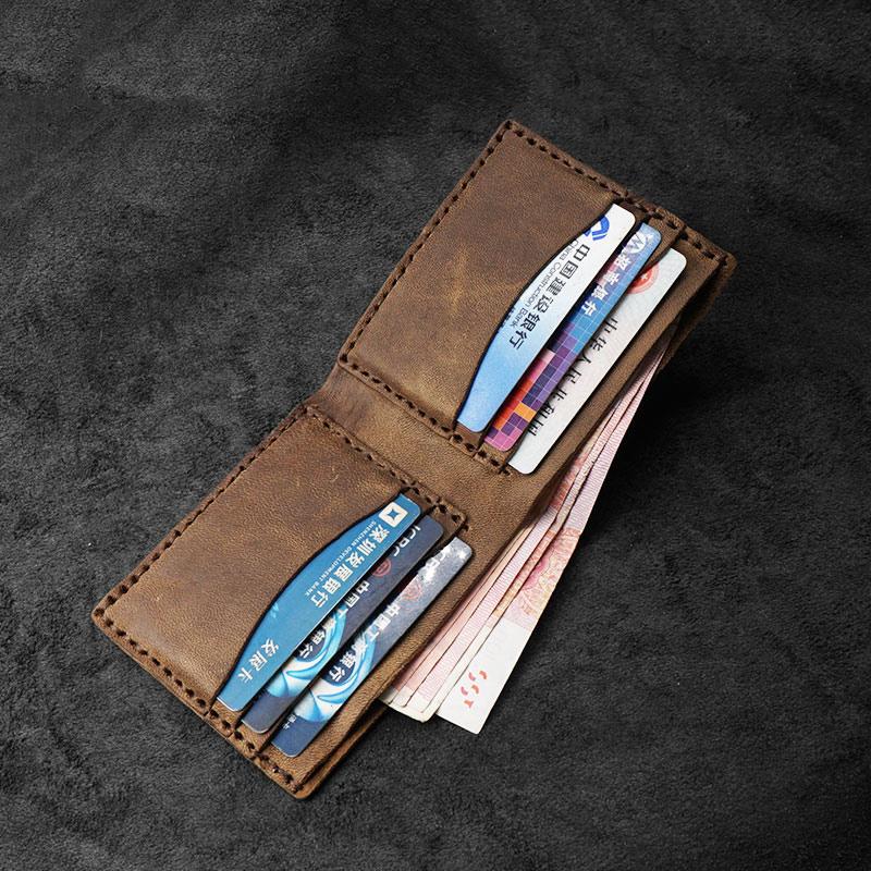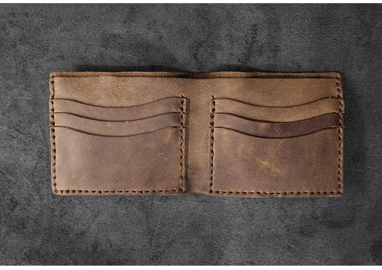 Design: Handmade Leather Mens Billfold Wallets Slim Brown Bifold Small Wallet for Men