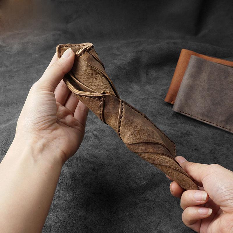 Handmade Leather Mens Billfold Wallets Slim Brown Bifold Small Wallet for Men