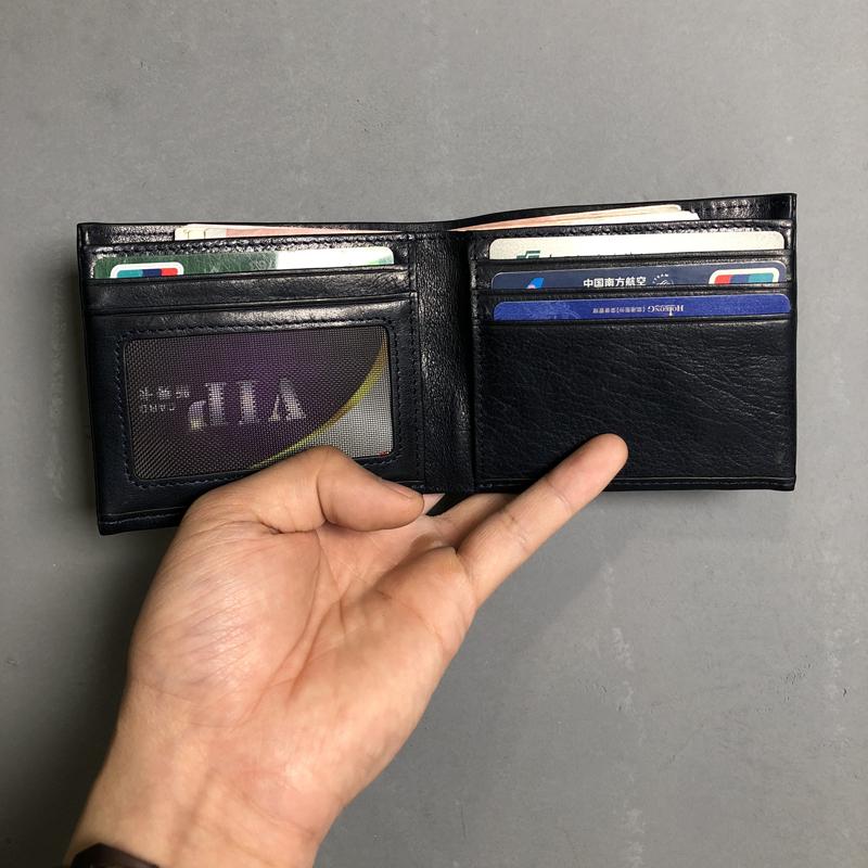 Design: Handmade Leather Mens Cool Black billfold Wallets Small Wallet Men Horizontal Wallets Front Pocket Wallet for Men
