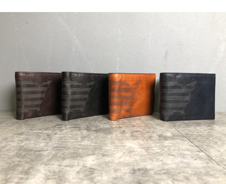 Cool Leather Mens Black Bifold billfold Wallets Small Wallet U.S. Map Wallets Front Pocket Wallet for Men
