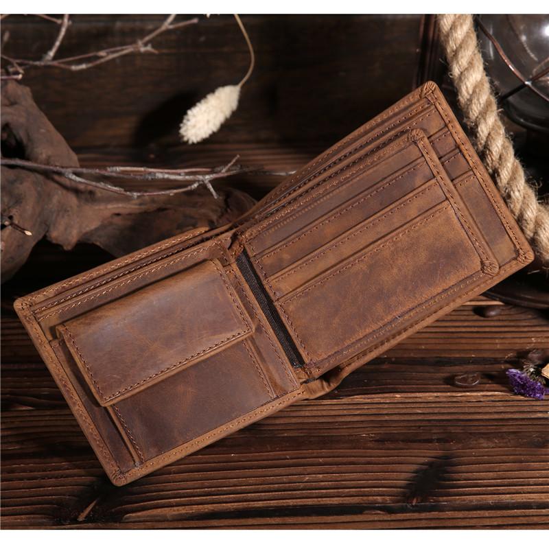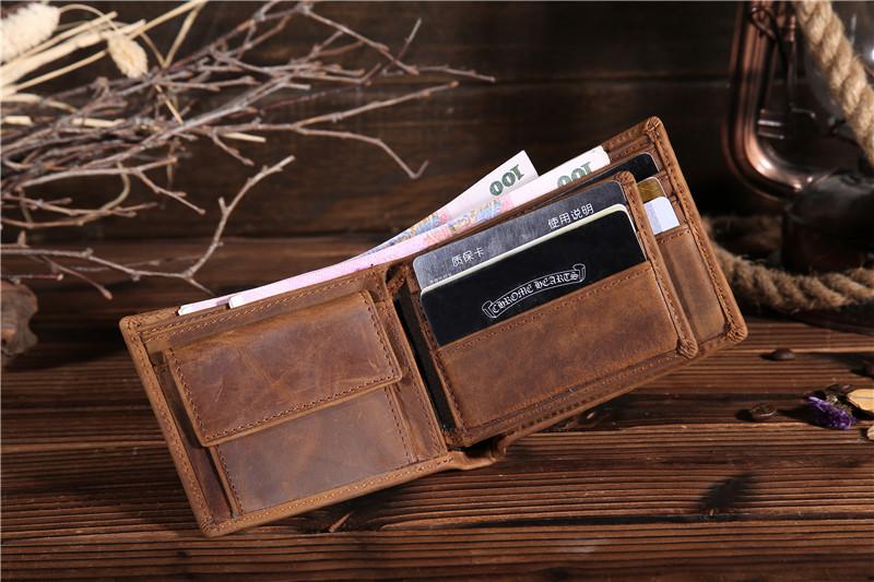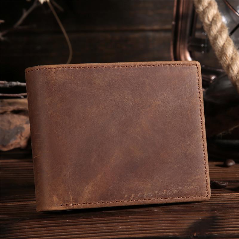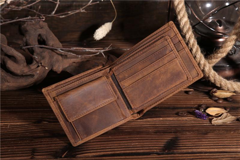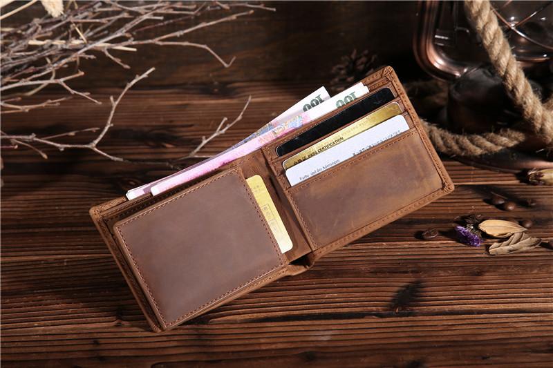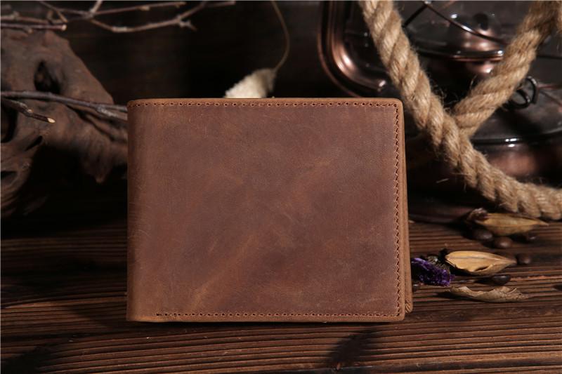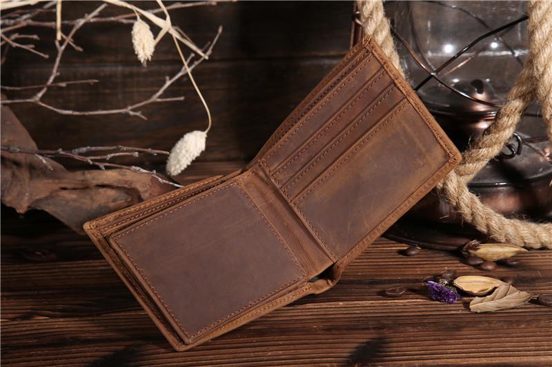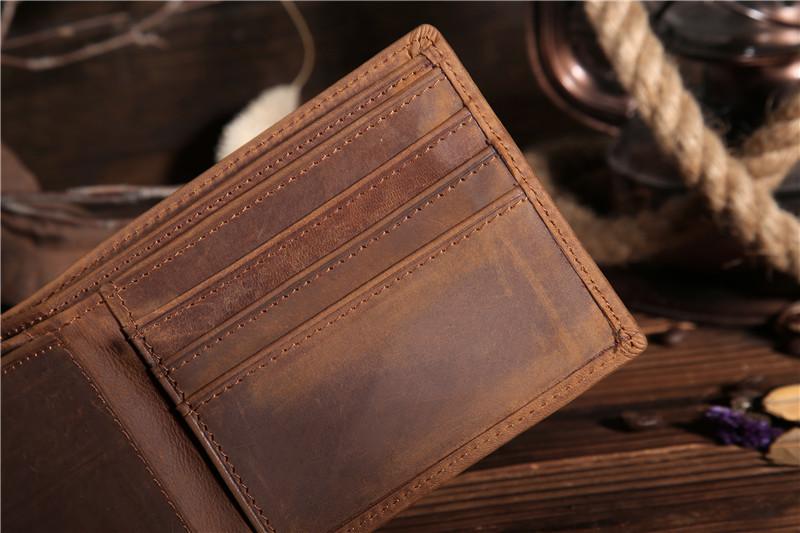 Handmade Leather Mens Cool Slim Leather Wallet Card Wallet Holders Men Small Wallets Bifold for Men