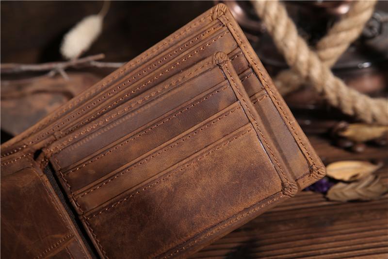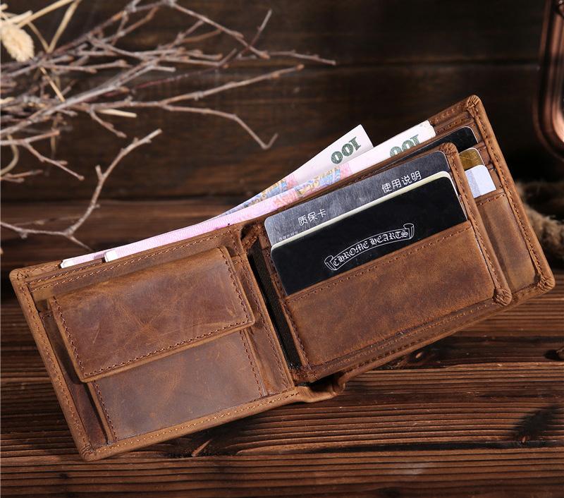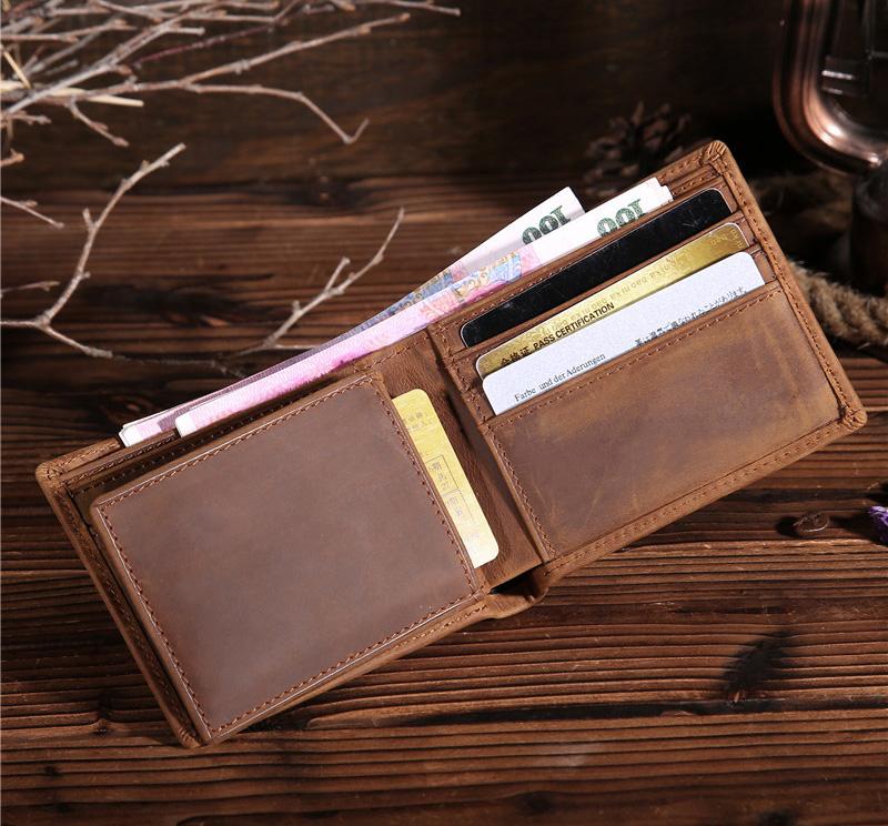 Design: Handmade Leather Mens Cool Slim Leather Wallet Card Wallet Holders Men Small Wallets Bifold for Men