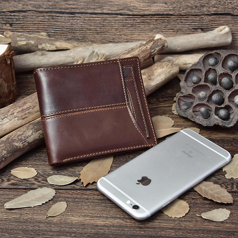 Design: Handmade Leather Mens Cool Slim Leather Wallet Card Wallet Holders Men Small Wallets Bifold for Men