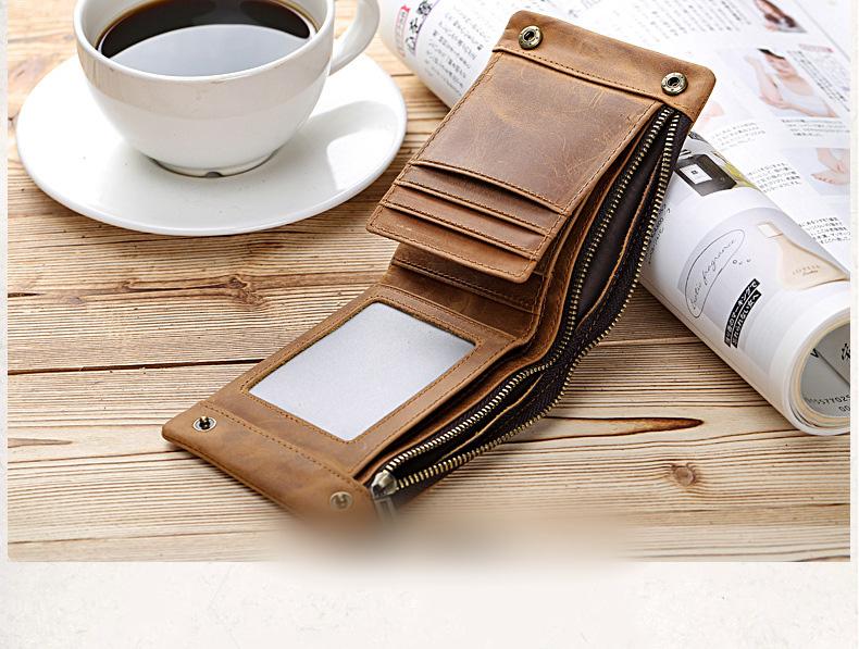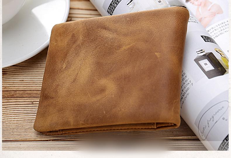 Design: Handmade Leather Mens Cool Slim Leather Wallet Card Wallet Holders Men Small Wallets Bifold for Men