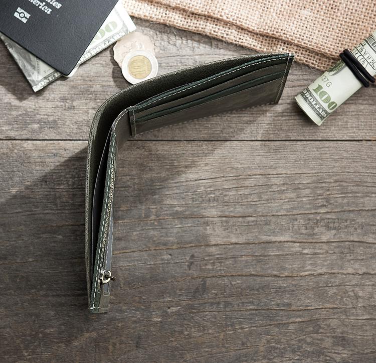 Style: Handmade Leather Mens Cool Slim Leather Zipper Wallet Men Small Wallets Bifold for Men