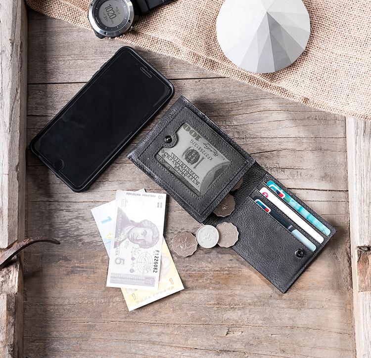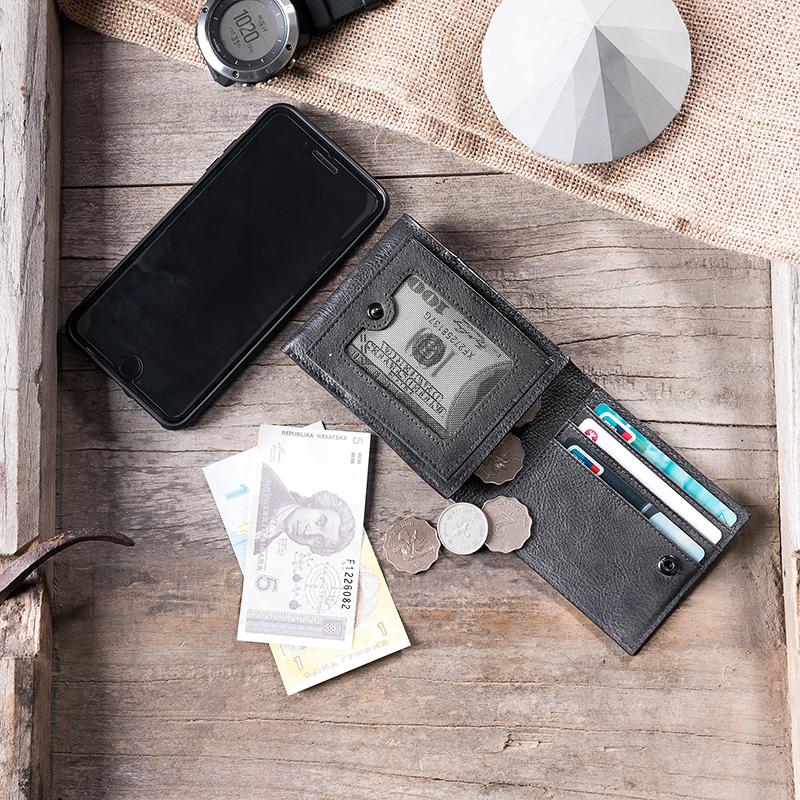 Design: Handmade Leather Mens Cool Slim Leather Wallet Men Small Wallets Bifold for Men