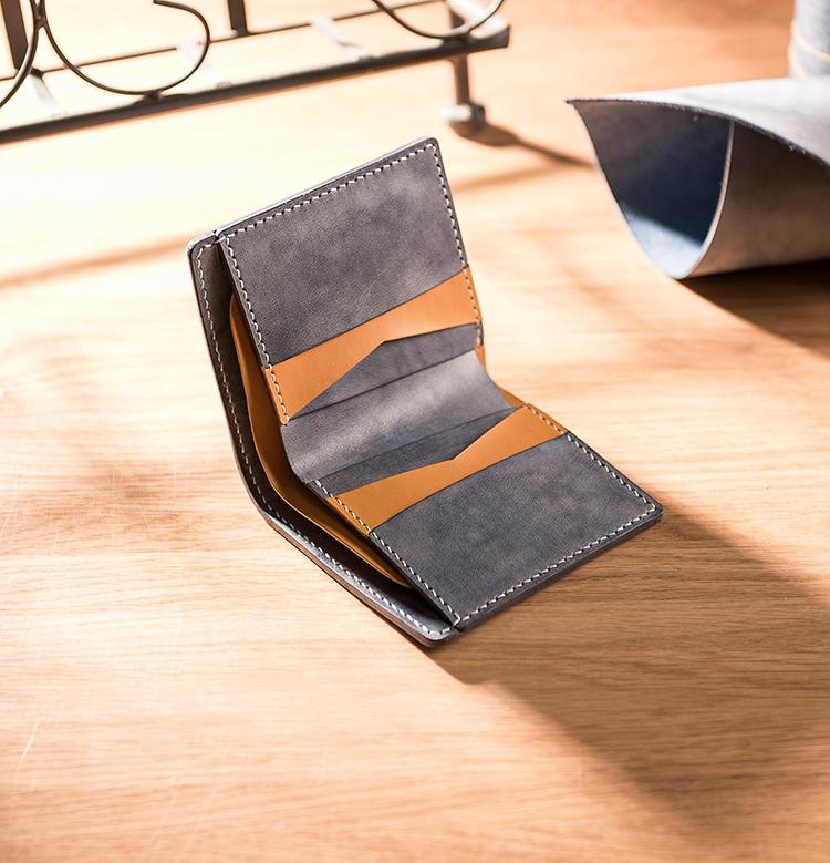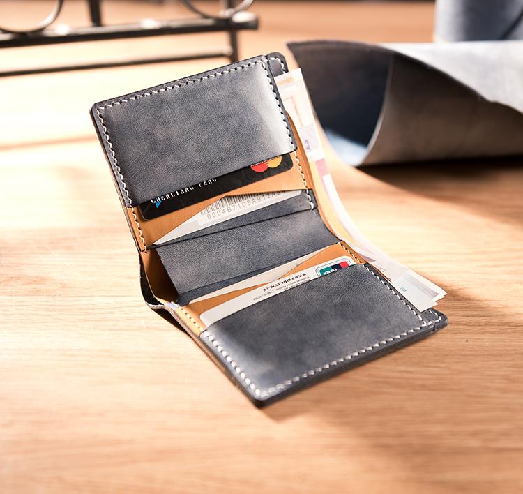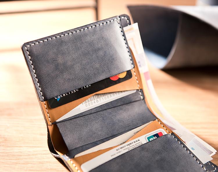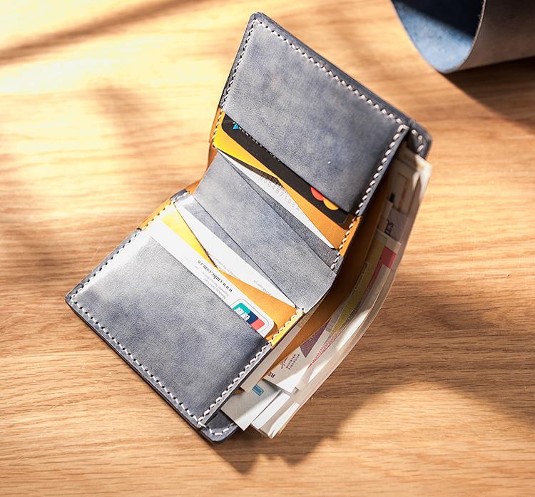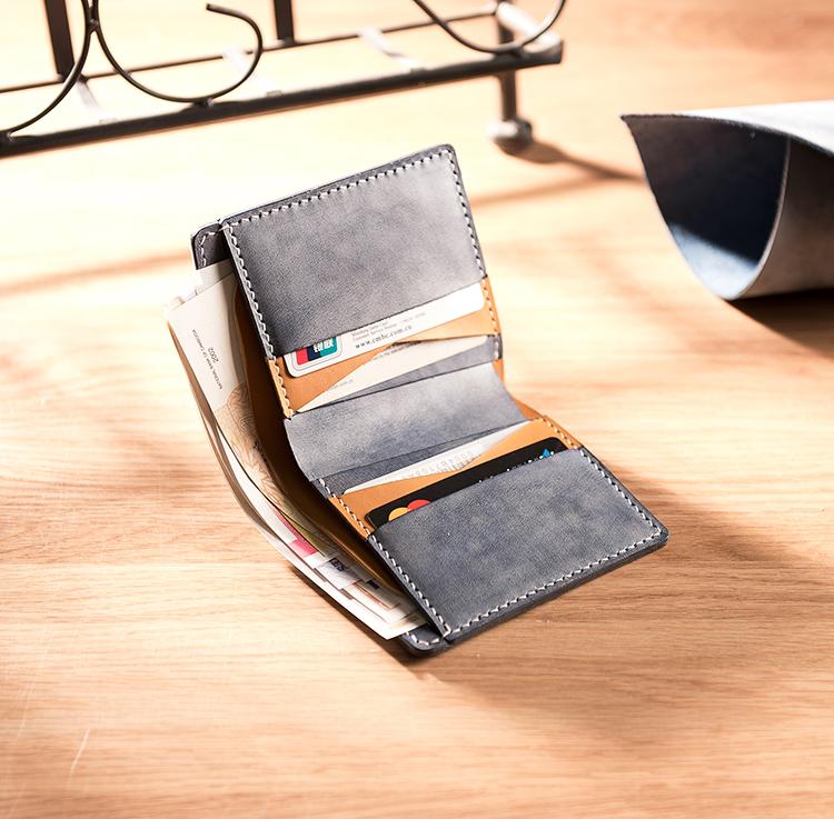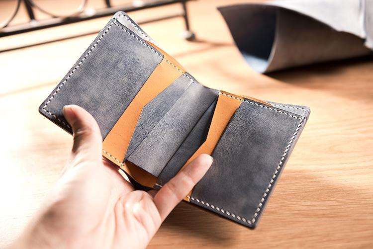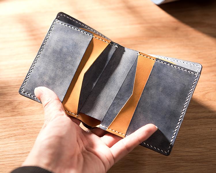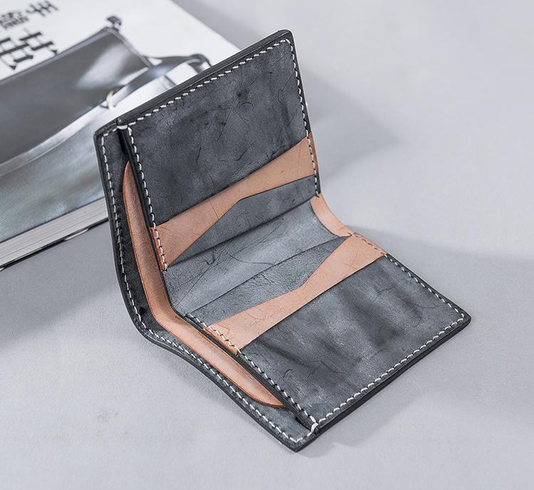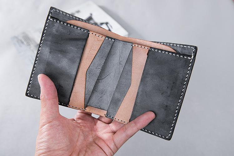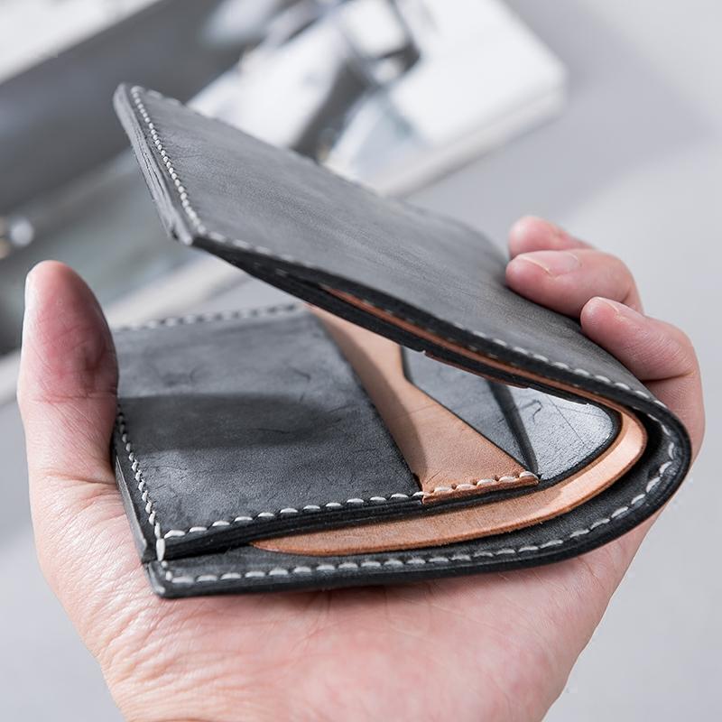 Handmade Leather Mens Cool Slim Leather Wallet Men Small Wallets Bifold for Men