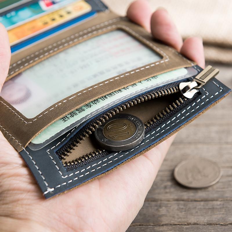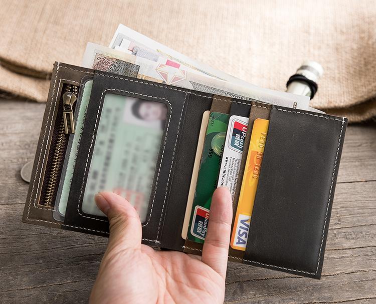 Design: Handmade Leather Mens Cool Slim Leather Wallet Men Small Wallets Bifold for Men