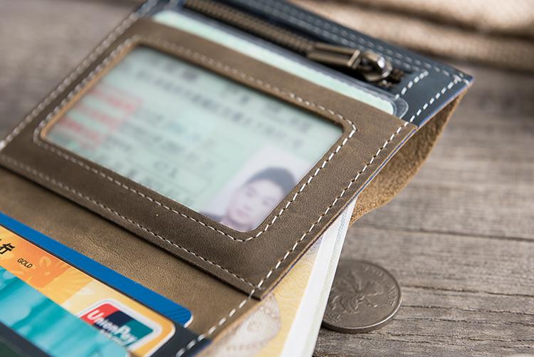 Slots: 1?full size bill slot,?4 card holders, 1 photo slot, 1 zipper slot