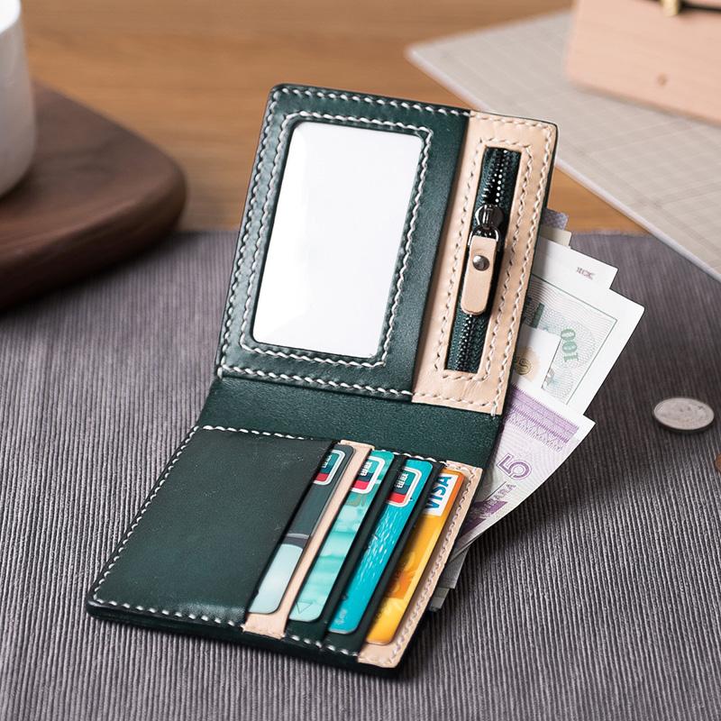 Design: Handmade Leather Mens Cool Slim Leather Wallet Men Small Wallets Bifold for Men Women