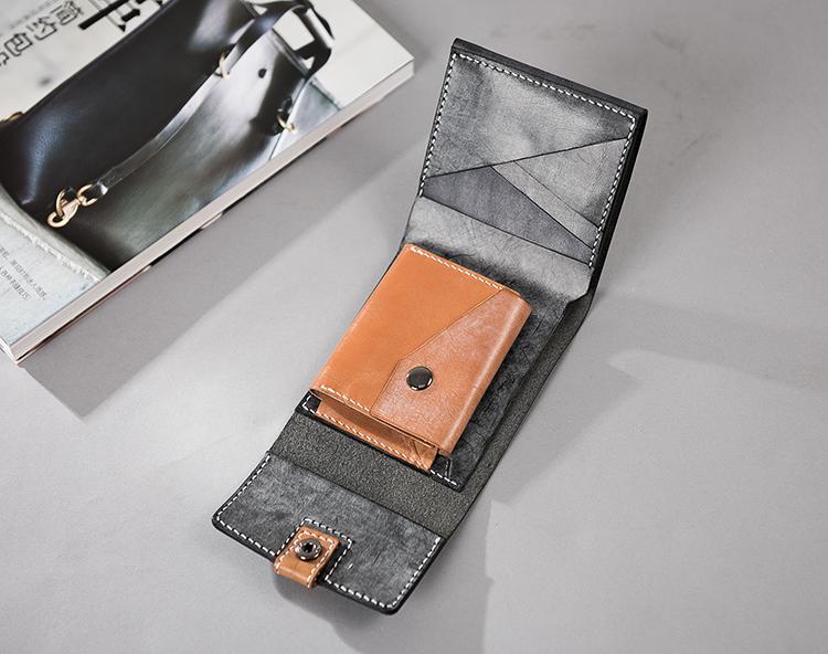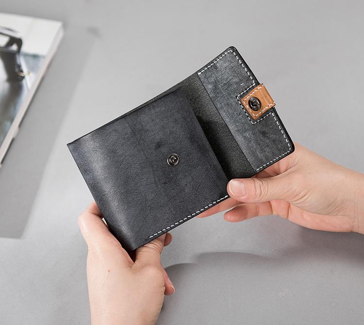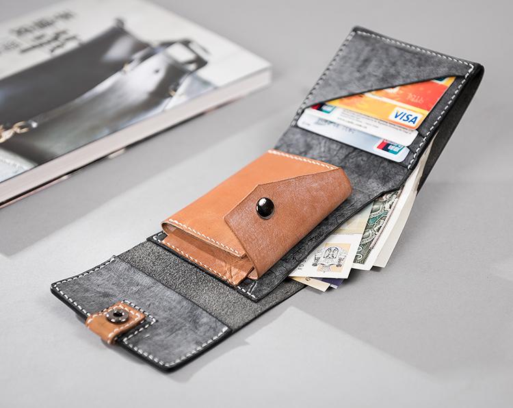 Design:Handmade Leather Mens Cool Slim Leather Wallet Men Small Wallets Trifold for Men