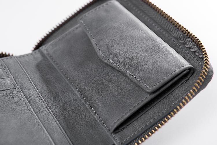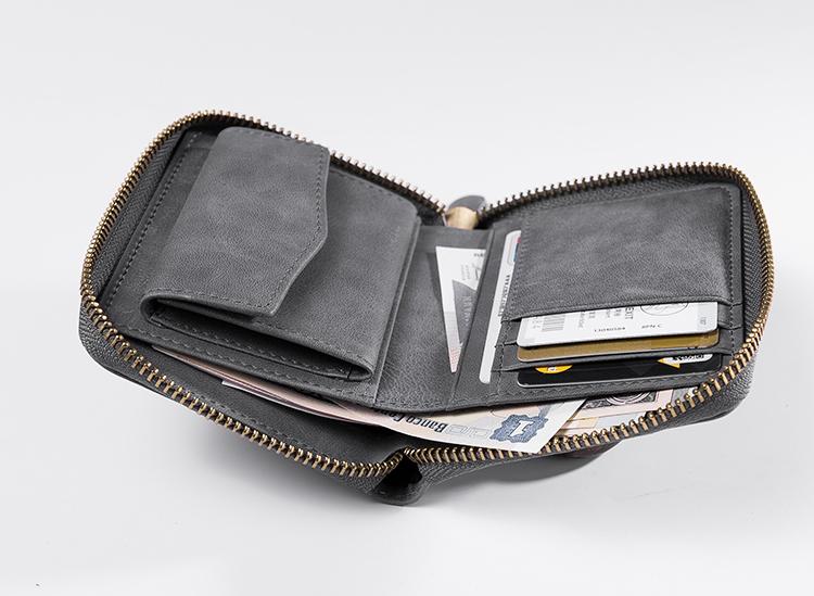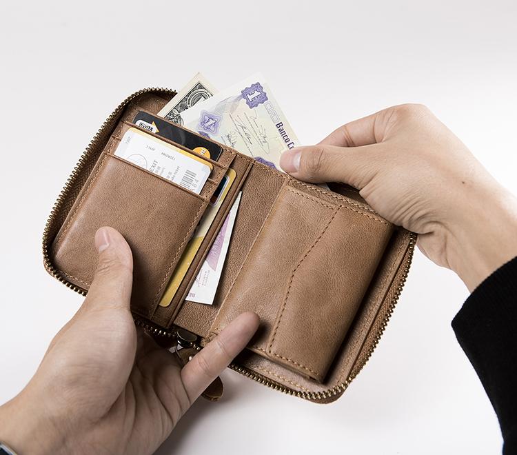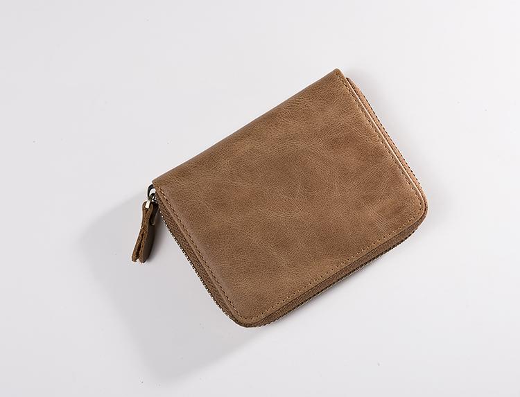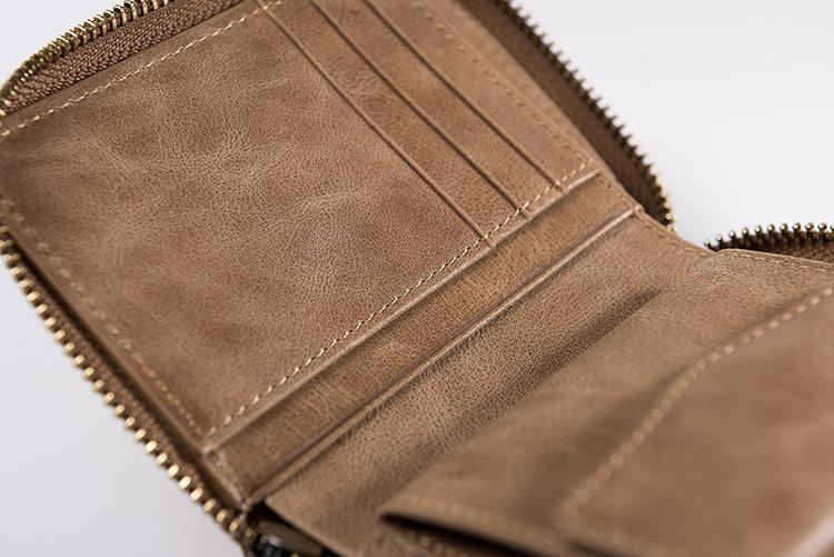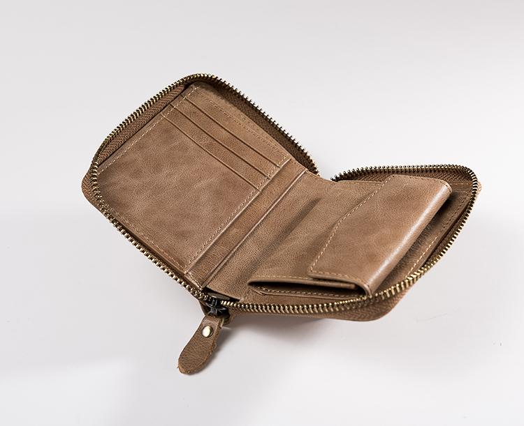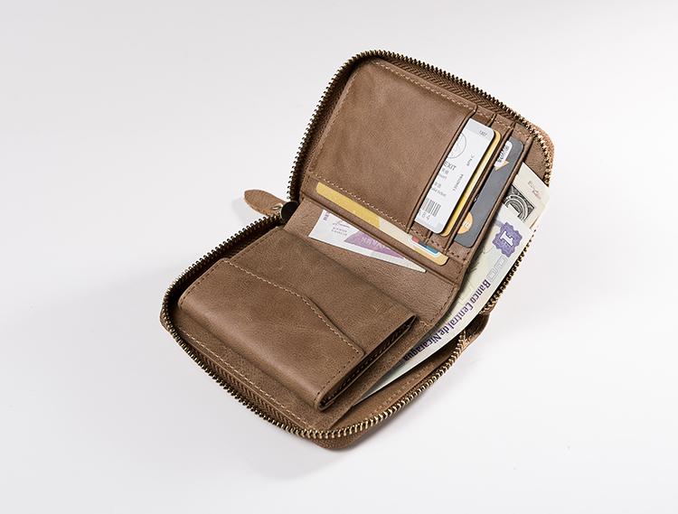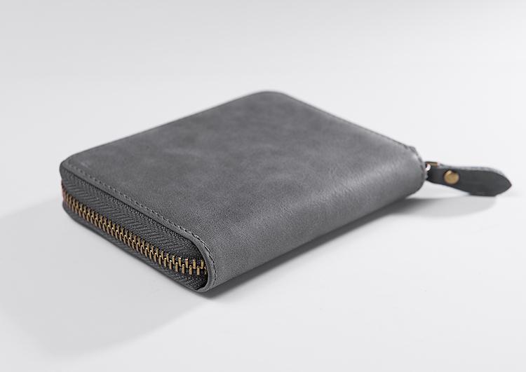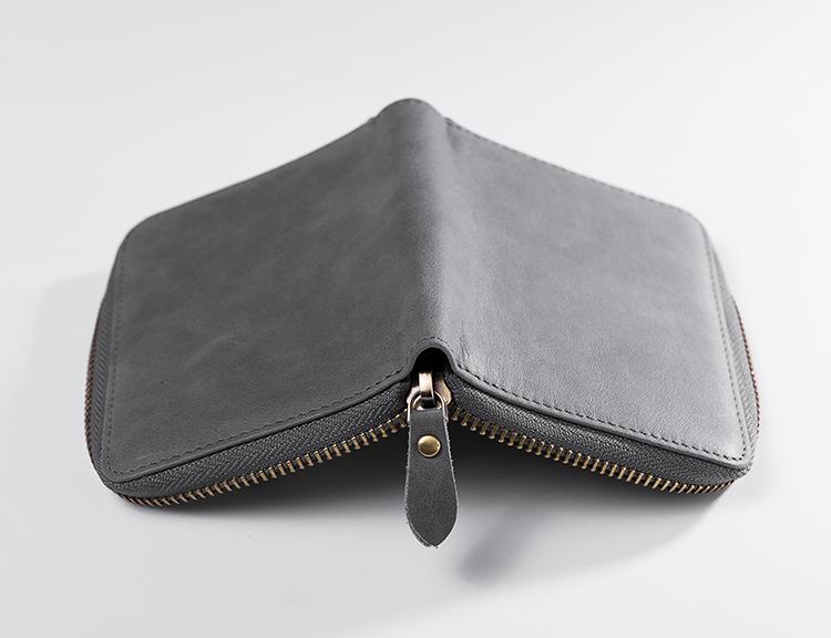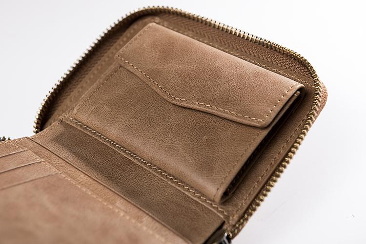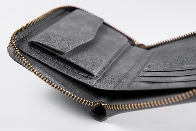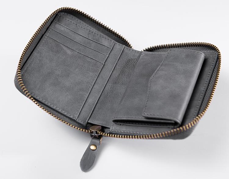 Design: Handmade Leather Mens Cool Slim Leather Zipper Wallet Men Small Wallets Bifold for Men