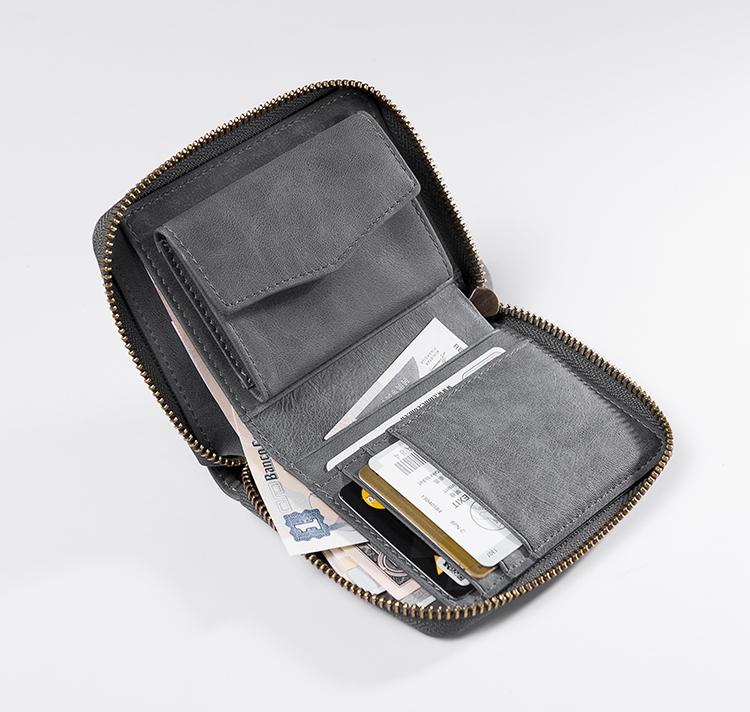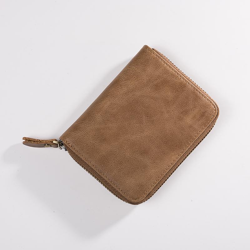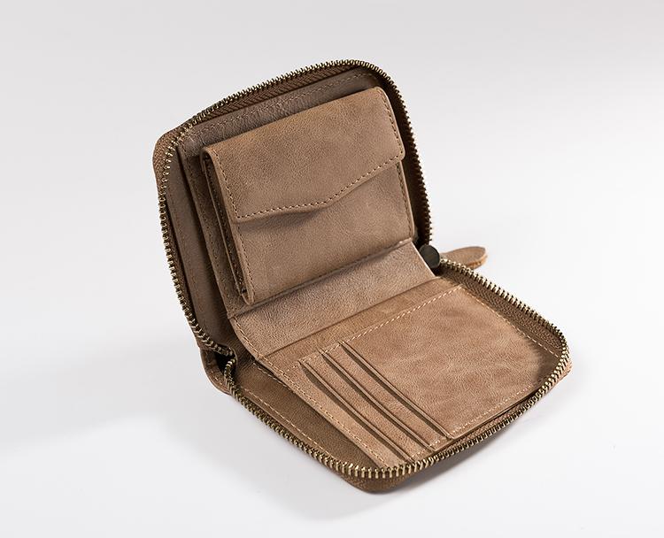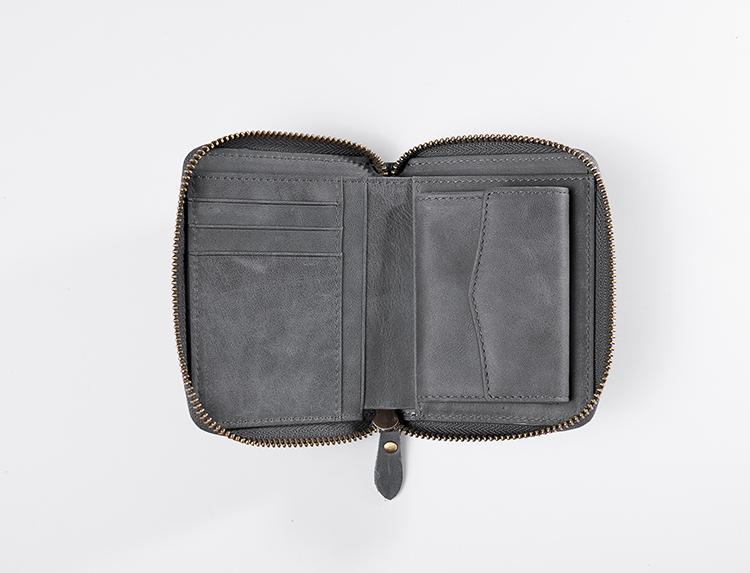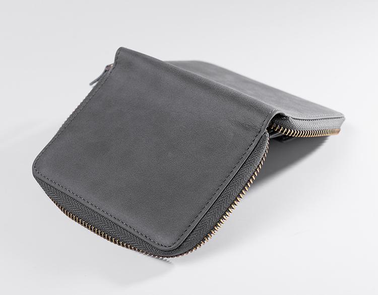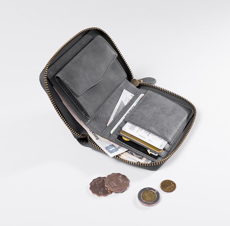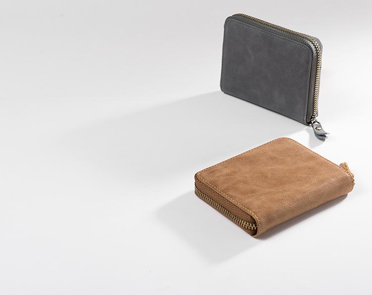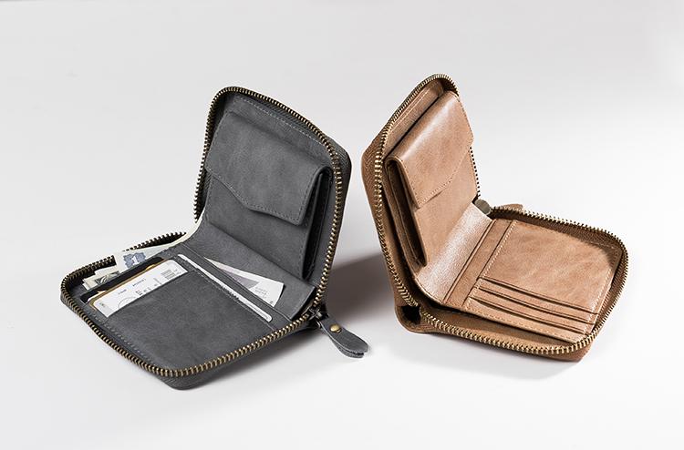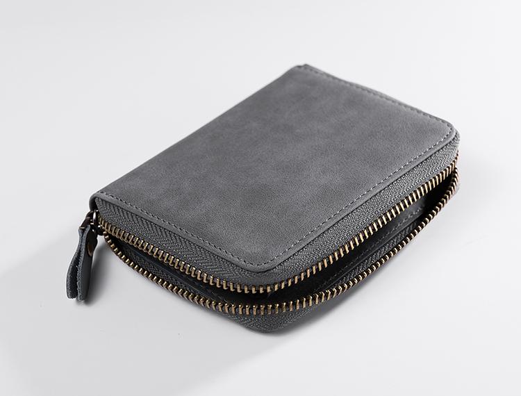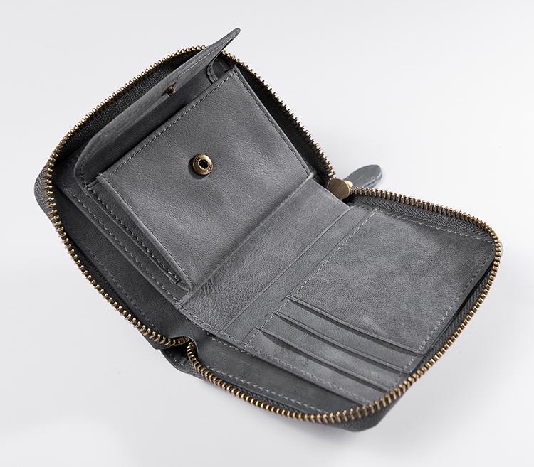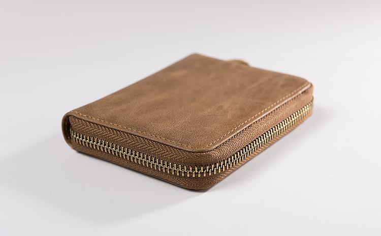 Design: Handmade Leather Mens Cool Slim Leather Zipper Wallet Men Small Wallets Bifold for Men