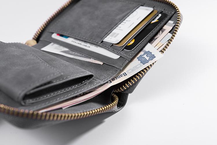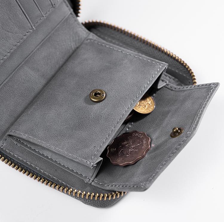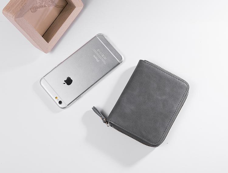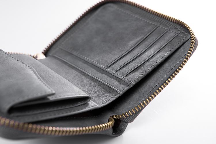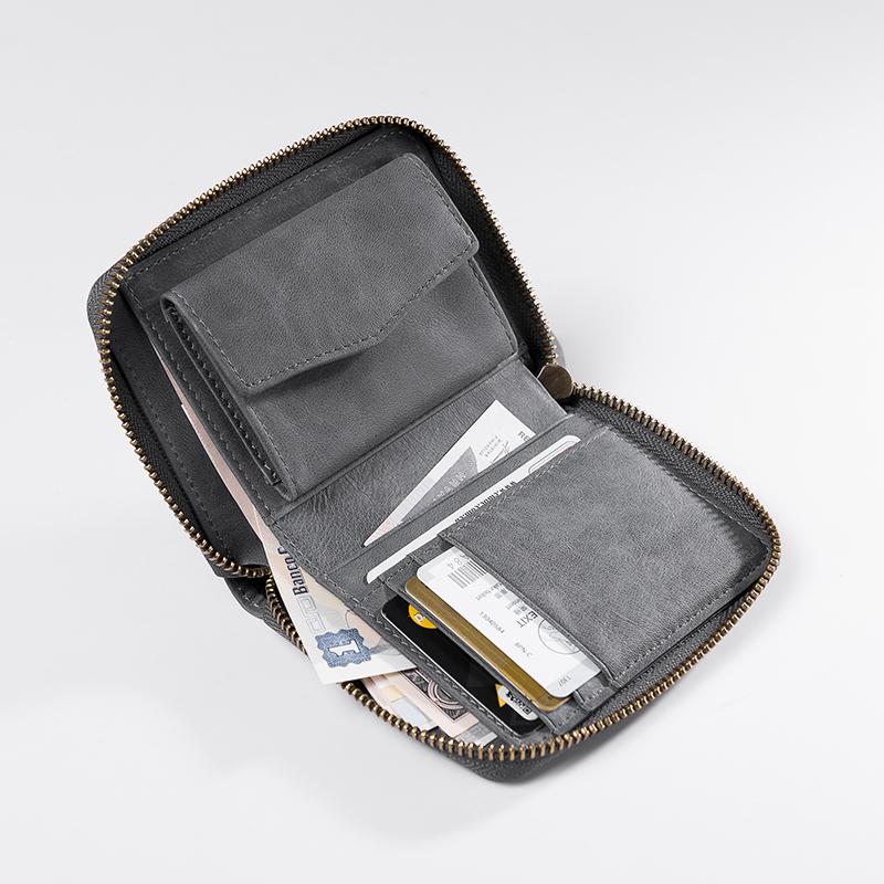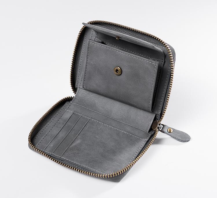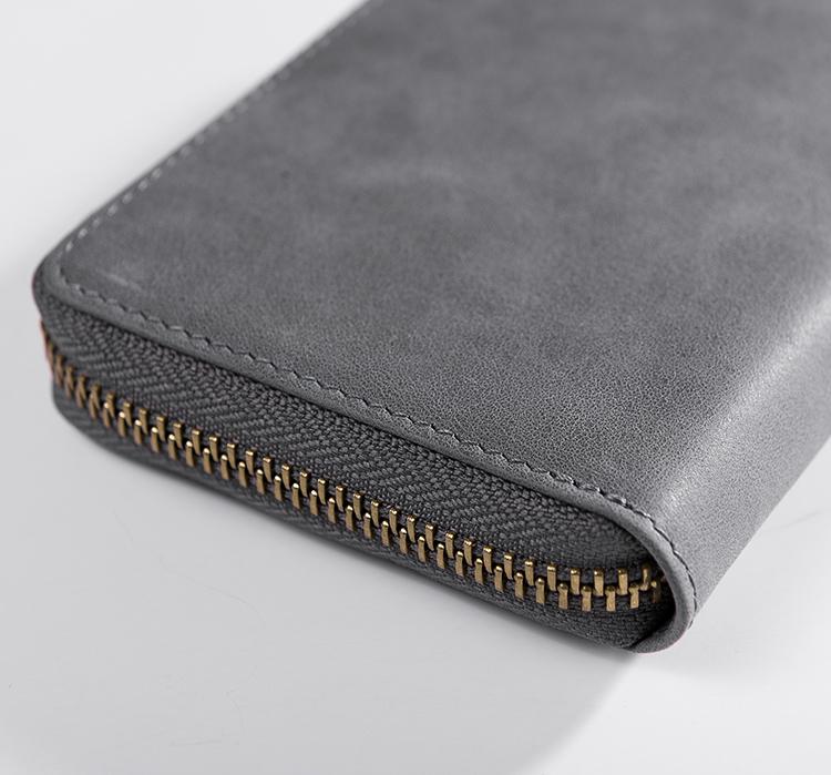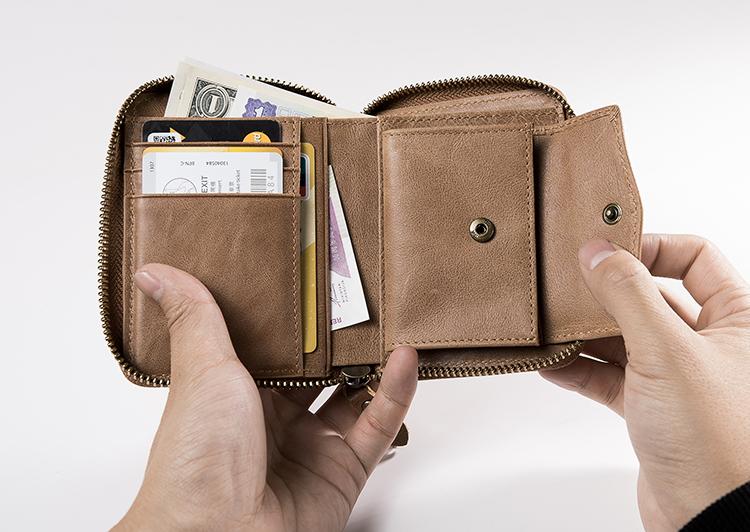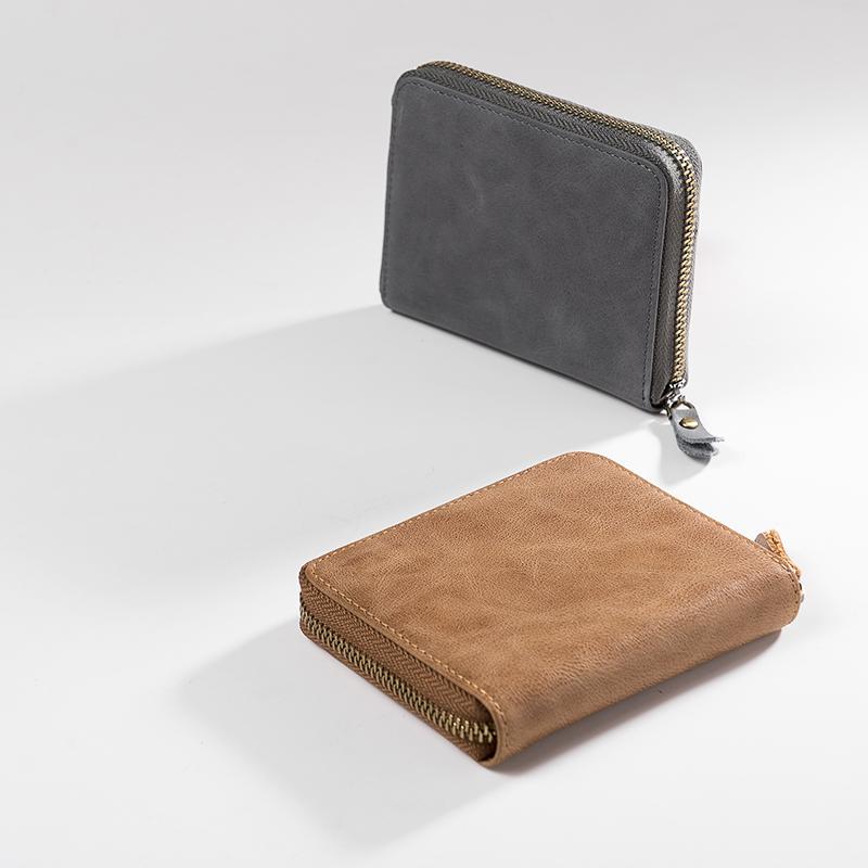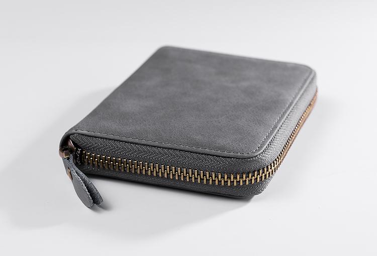 Design: Handmade Leather Mens Cool Slim Leather Zipper Wallet Men Small Wallets Bifold for Men
