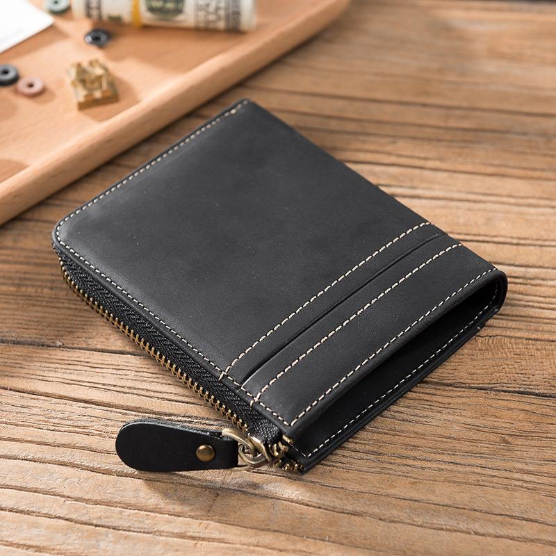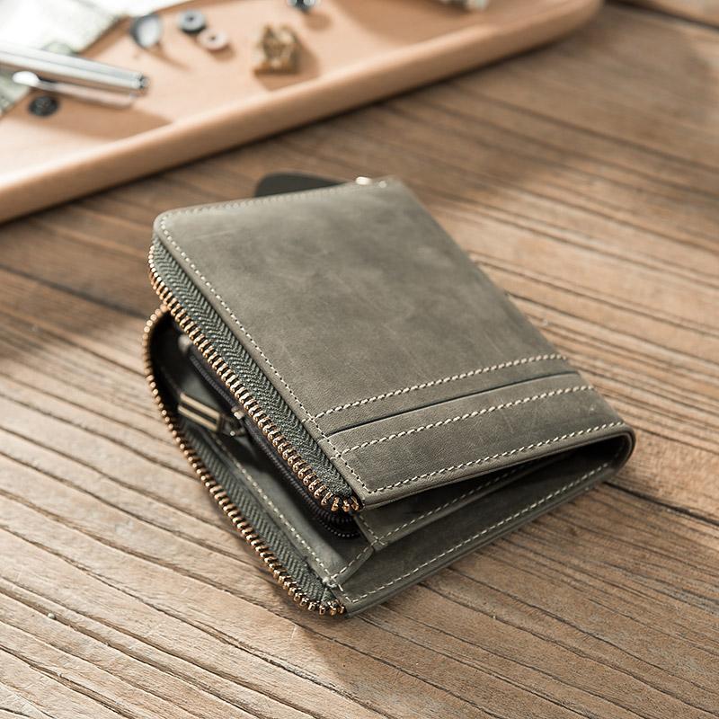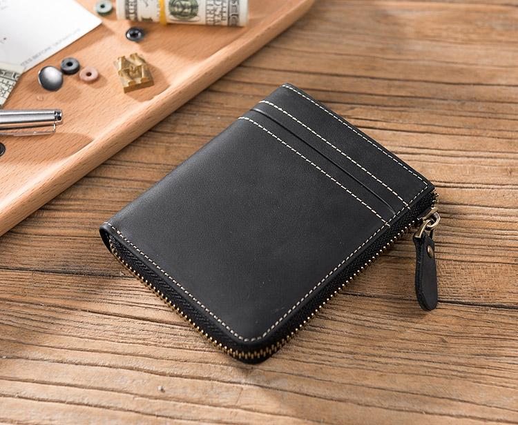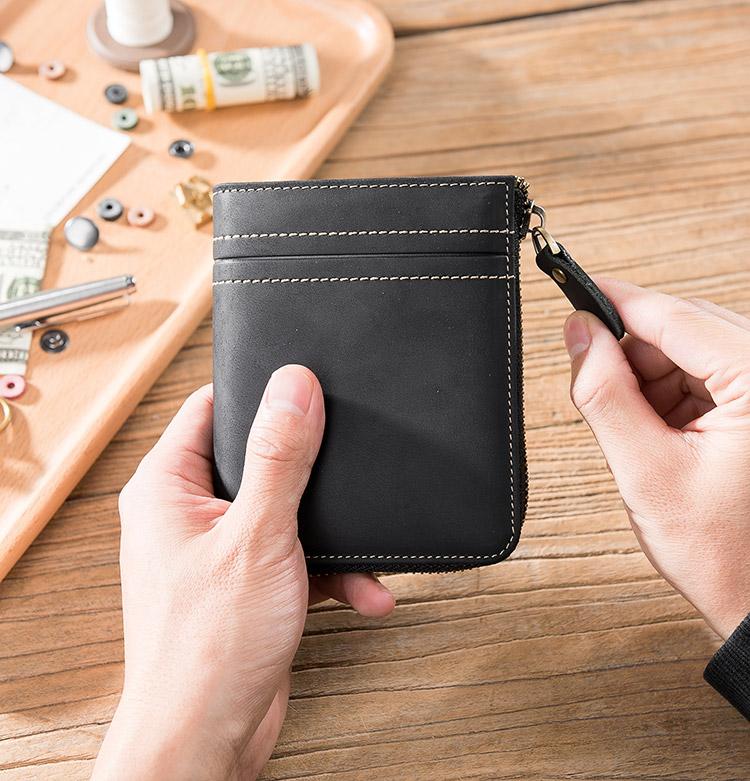 Style: Handmade Leather Mens Cool Slim Leather Zipper Wallet Men Small Wallets Bifold for Men