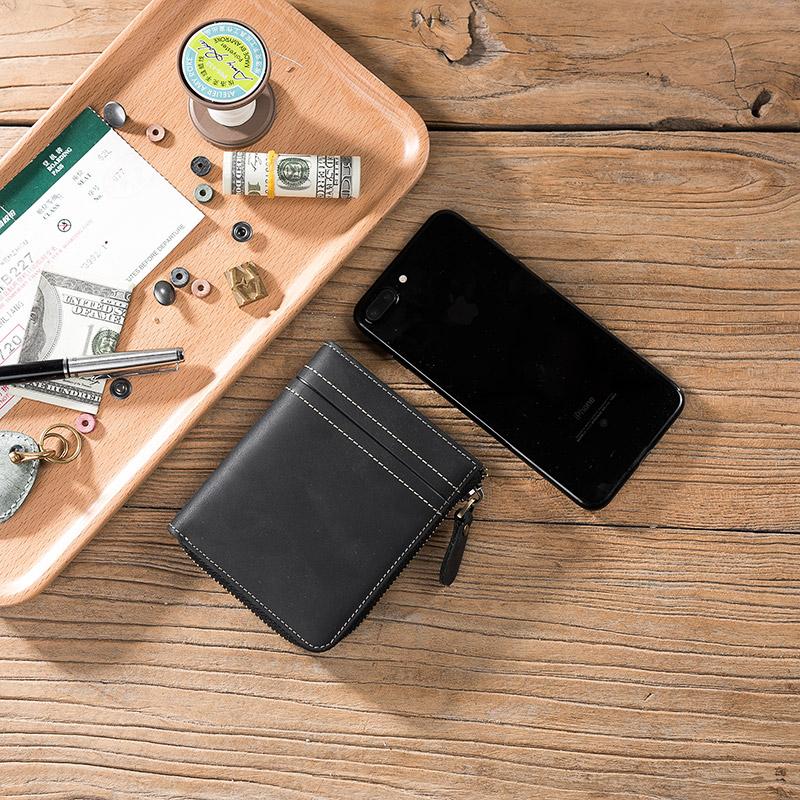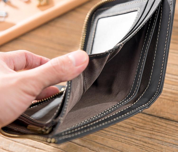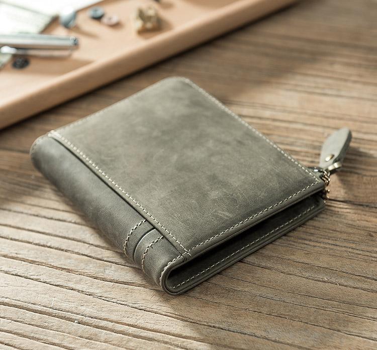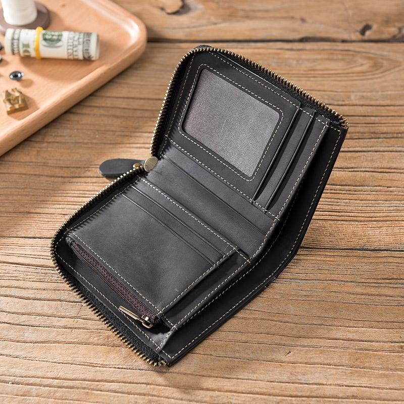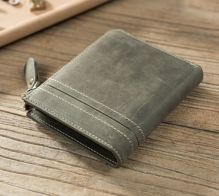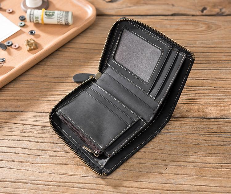 Design: Handmade Leather Mens Cool Slim Leather Zipper Wallet Men Small Wallets Bifold for Men