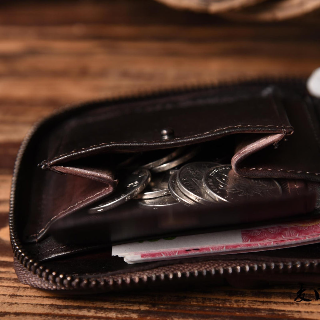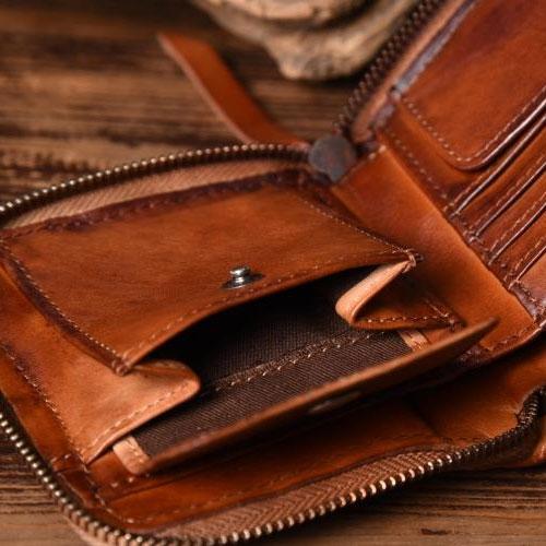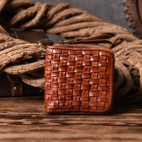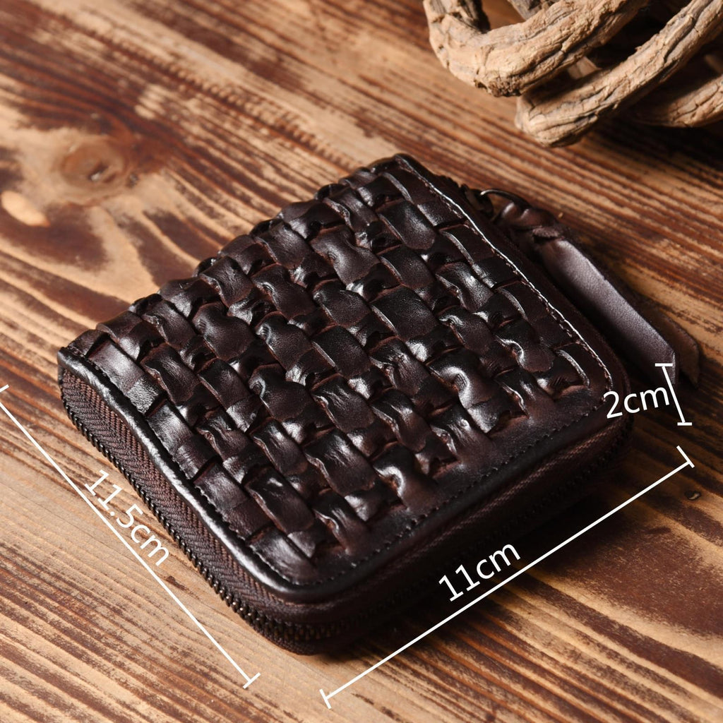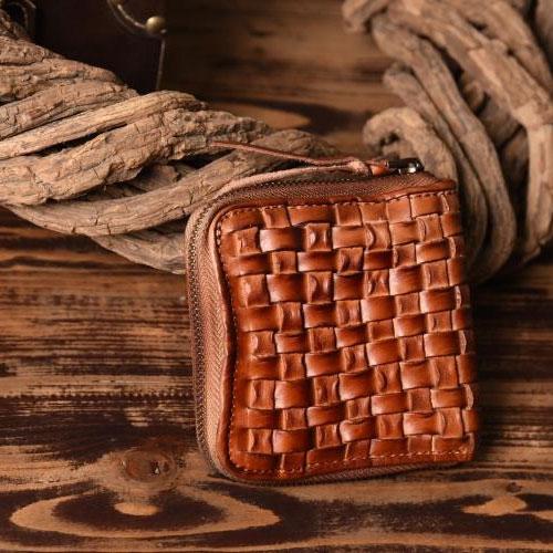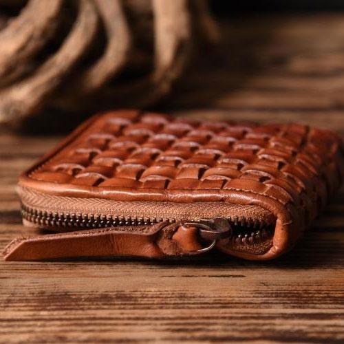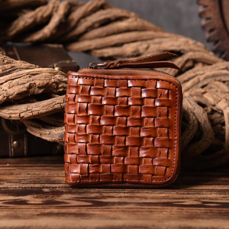 Style: Handmade Leather Mens Cool Wallet Men Braided Wallets Zipper Wallet for Men