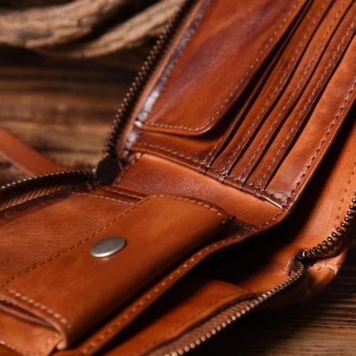 Design: Handmade Leather Mens Cool Wallet Men Braided Wallets Zipper Wallet for Men