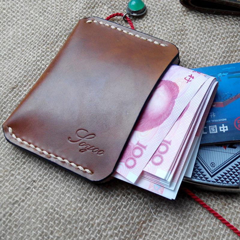 Handmade Leather Mens Slim Front Pocket Wallet Leather Small Wallets for Men