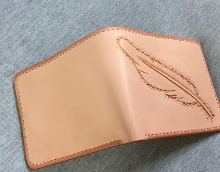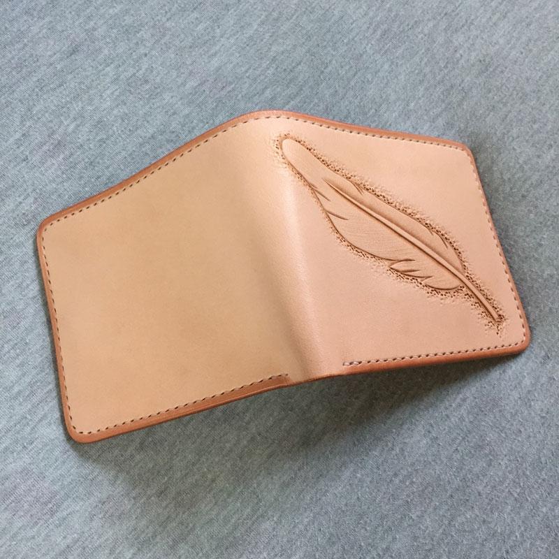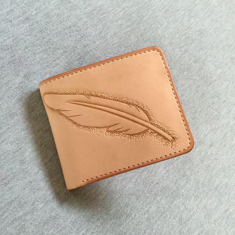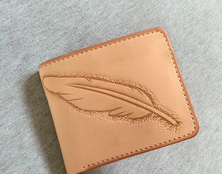 Design: Handmade Leather Mens Tooled Feather Cool billfold Leather Wallet Men Small Wallets Bifold for Men