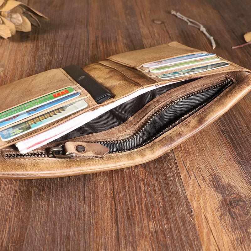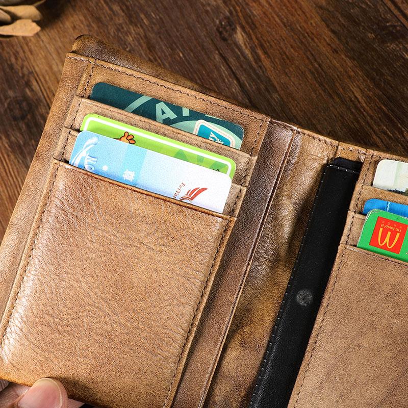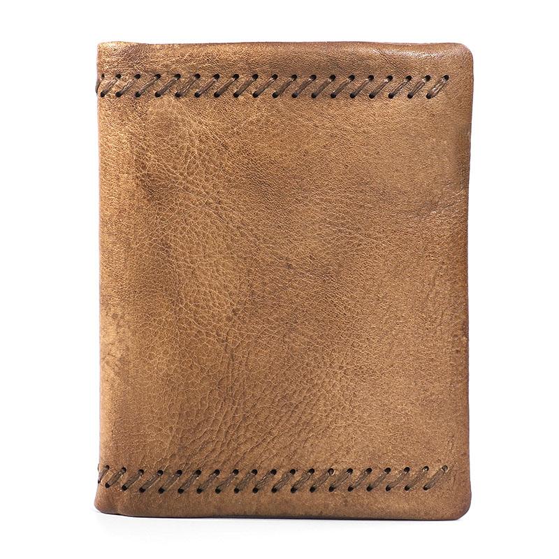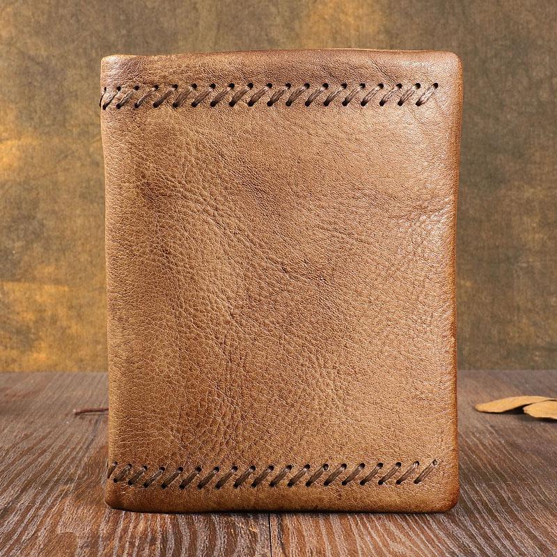 Style: Handmade Leather Mens Vertical Gray billfold Wallet Men Bronze Small Wallets Bifold for Men