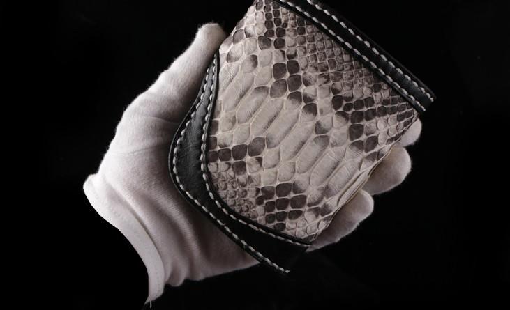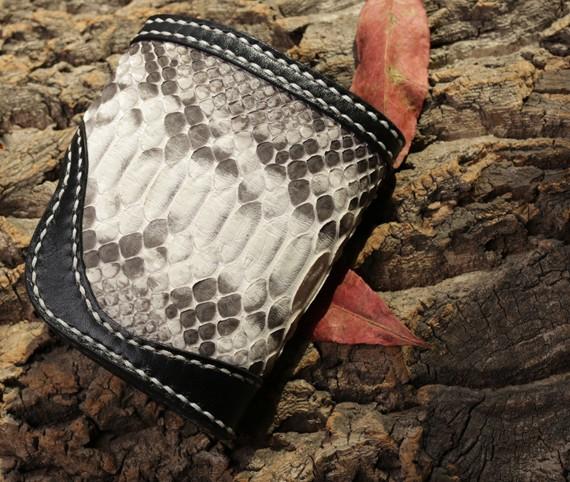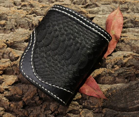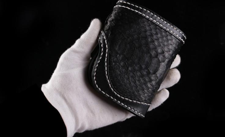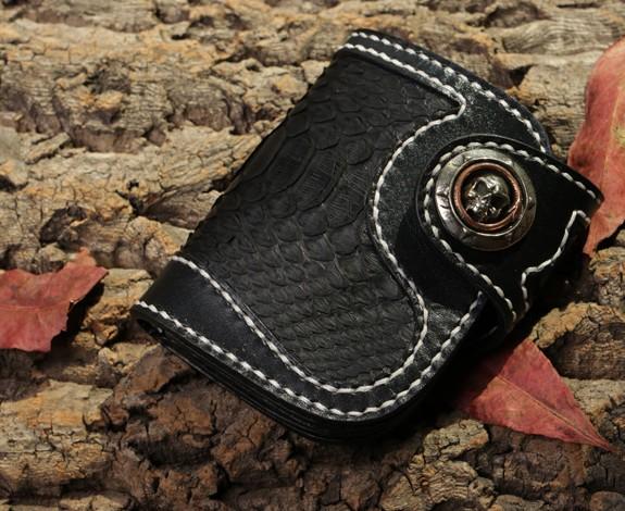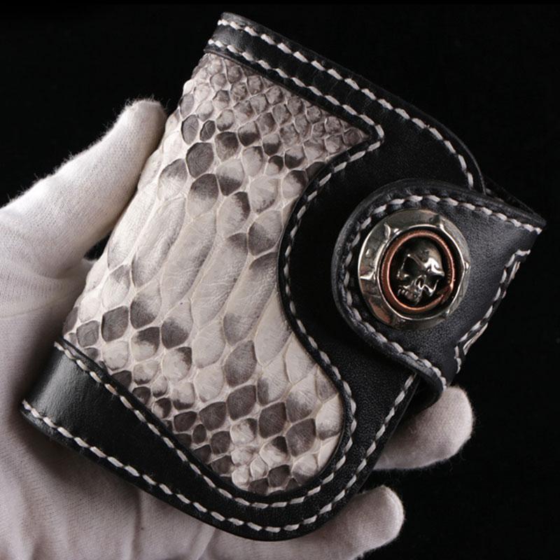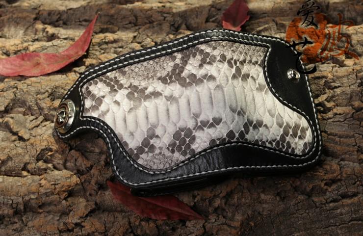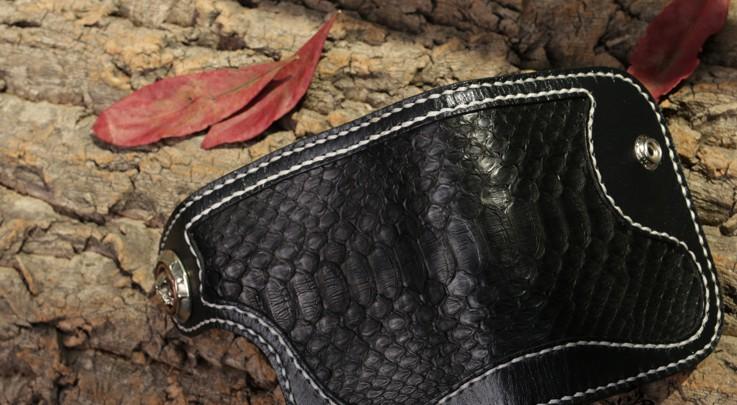 Handmade Leather billfold Mens Chain Biker Wallet Cool Boa Skin Wallet With Chain Wallets for Men