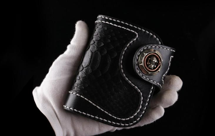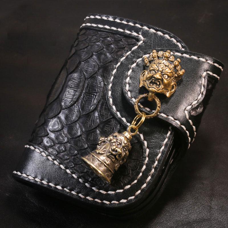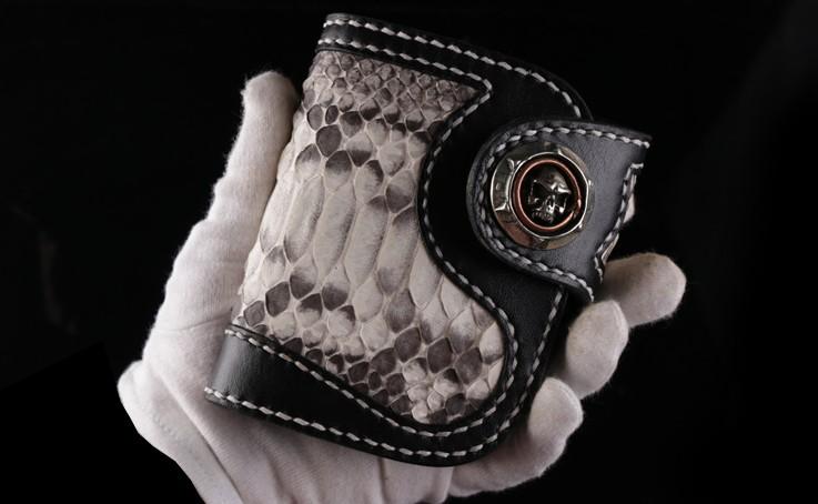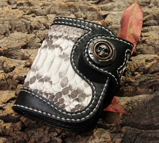Design: Handmade Leather billfold Mens Chain Biker Wallet Cool Boa Skin Wallet With Chain Wallets for Men