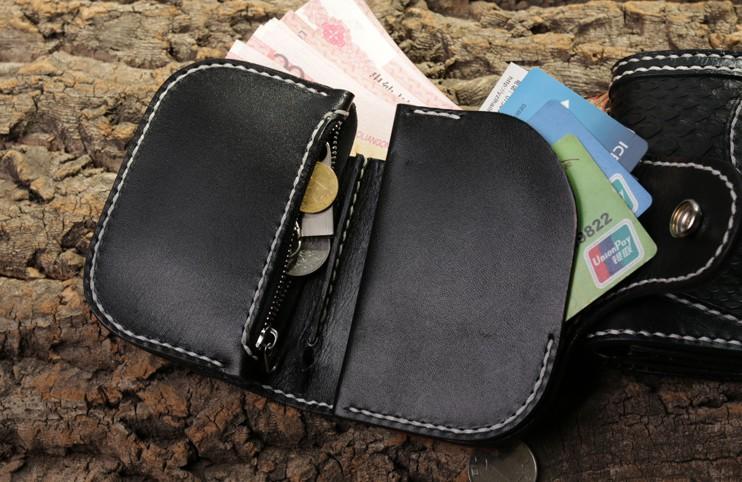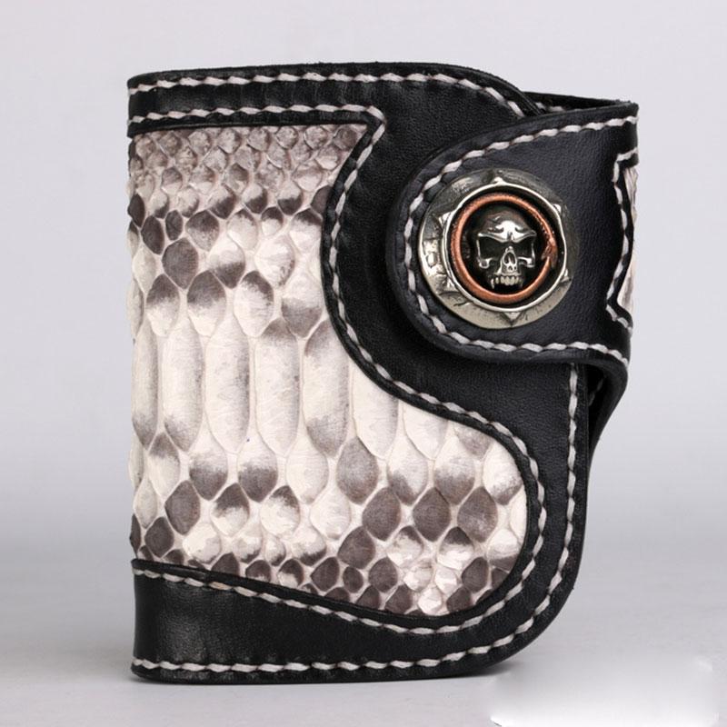 Style: Handmade Leather billfold Mens Chain Biker Wallet Cool Boa Skin Wallet With Chain Wallets for Men