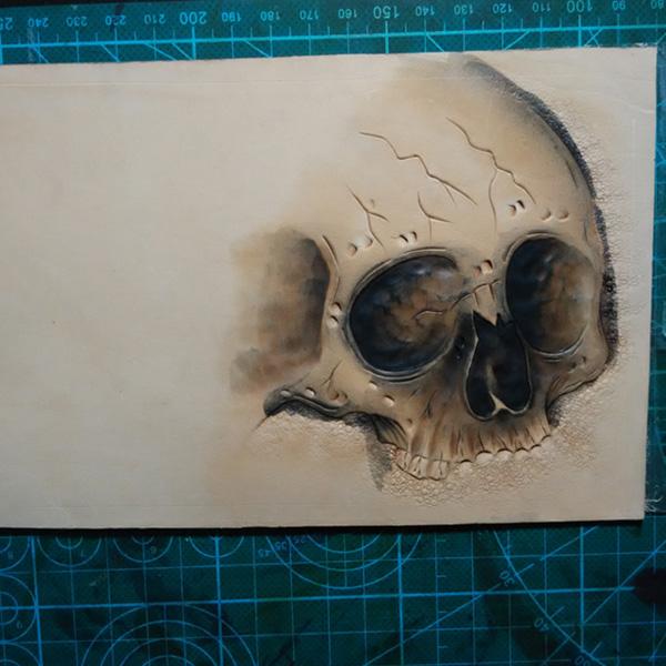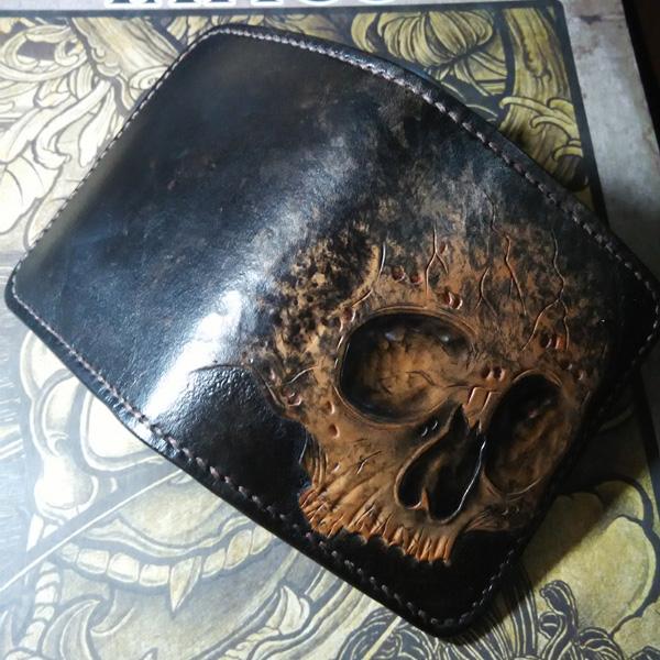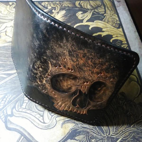 Design: Handmade Leather Skull Tooled Mens billfold Wallet Cool Leather Wallet Slim Wallet for Men