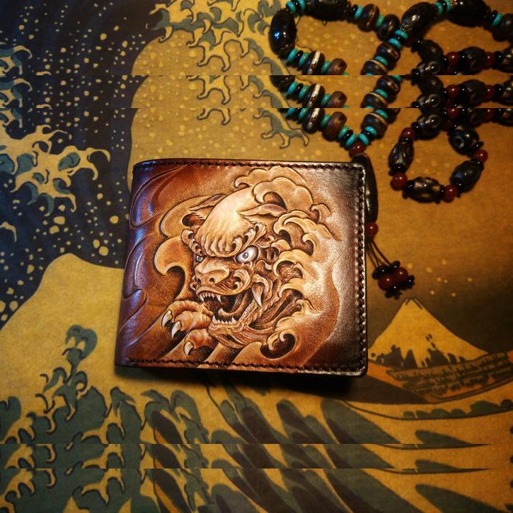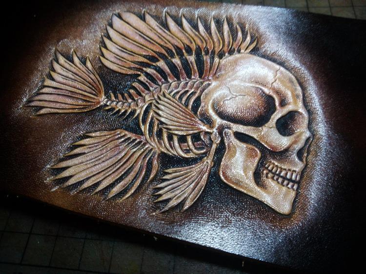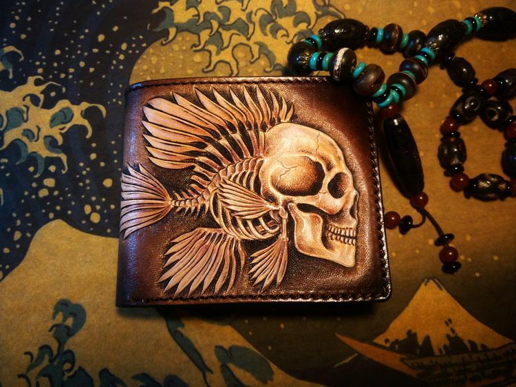 Design: Handmade Leather Skull Tooled Mens billfold Wallet Cool Leather Wallet Slim Wallet for Men