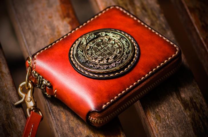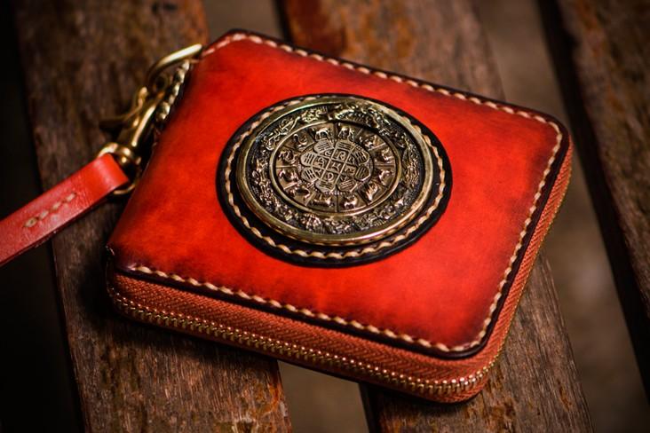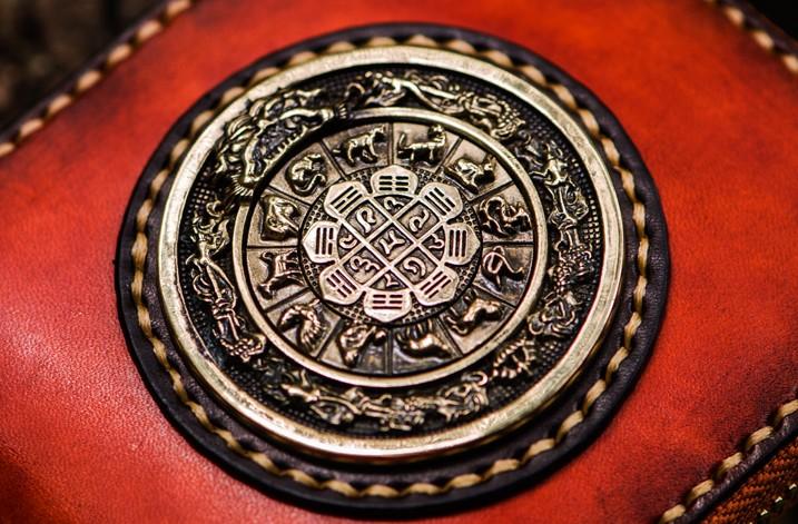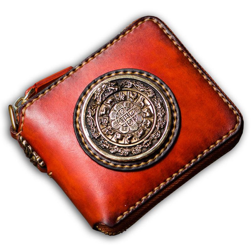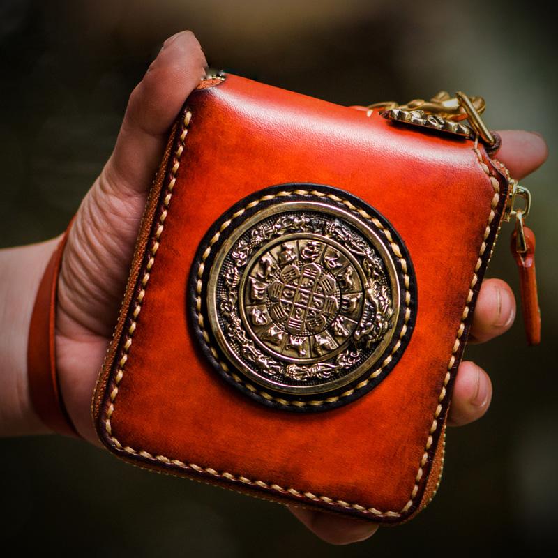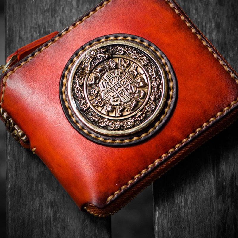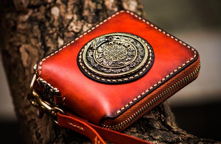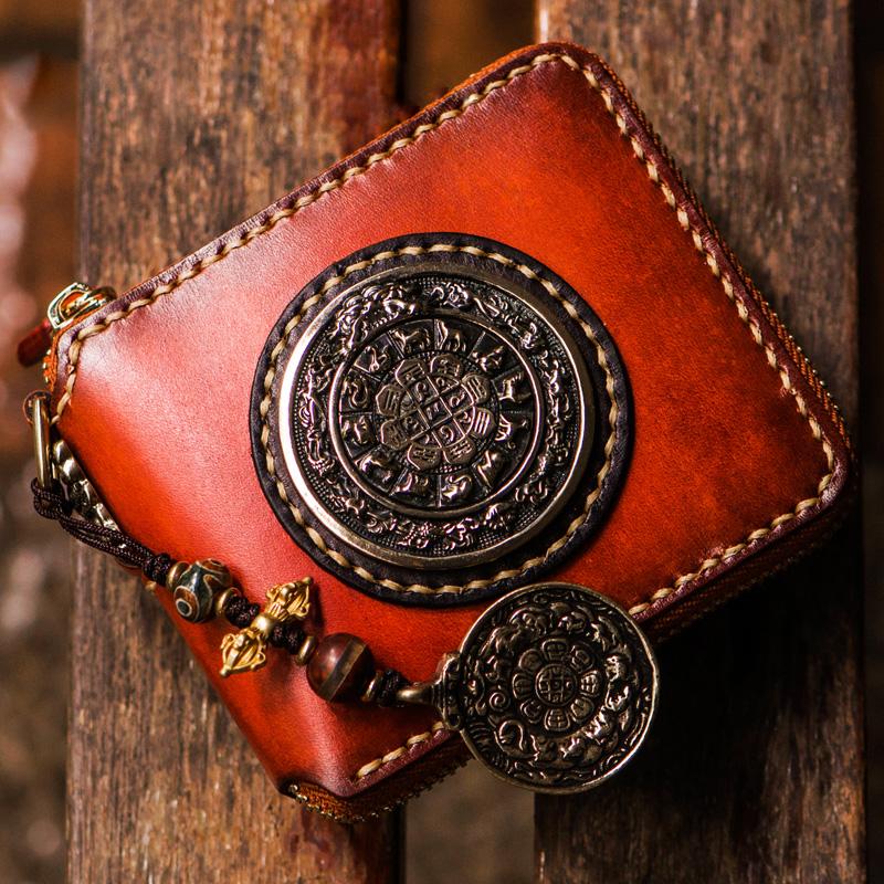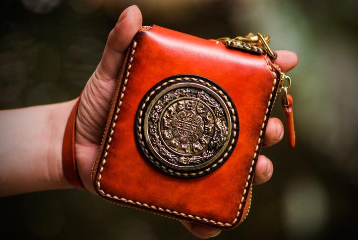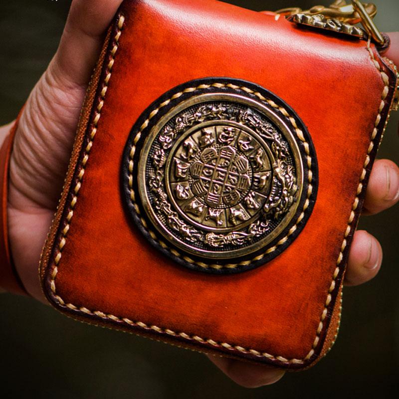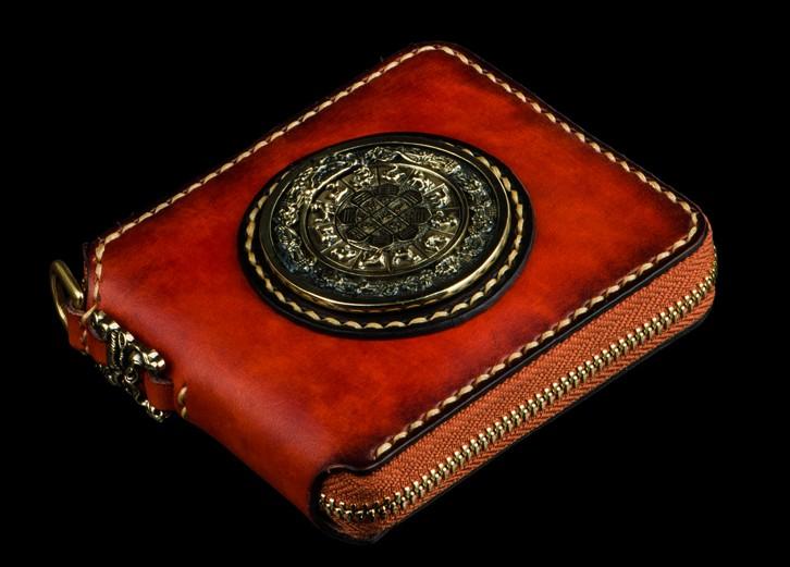 Design: Handmade Leather Small Tibetan Tooled Mens billfold Wallet Cool Chain Wallet Biker Wallet for Men