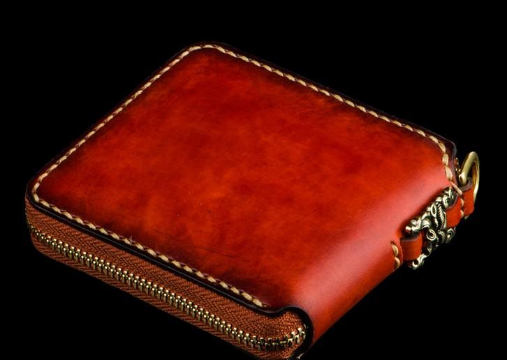Style: Handmade Leather Small Tooled Mens billfold Wallet Cool Chain Wallet Biker Wallet for Men