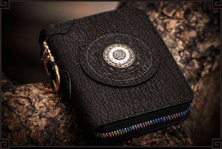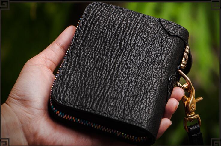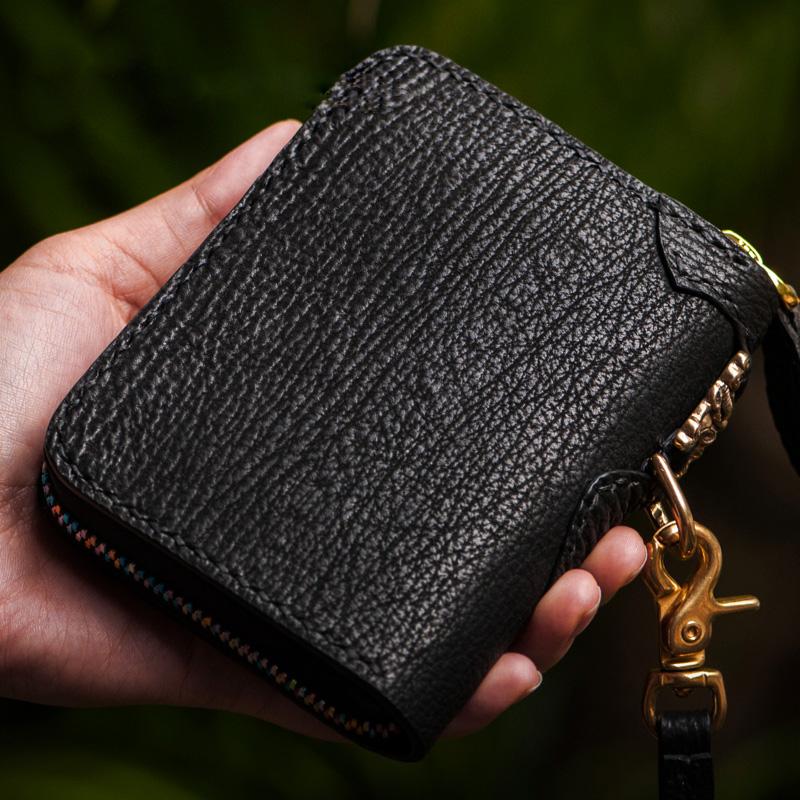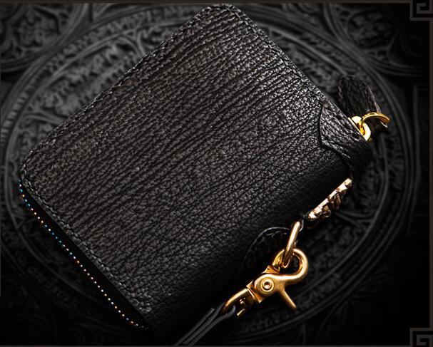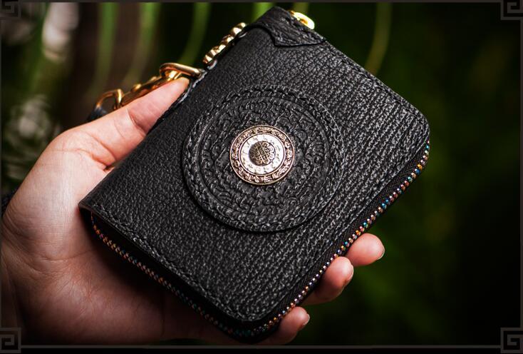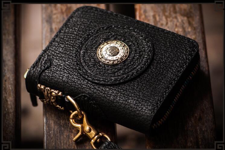 Style: Handmade Leather Small Tooled Mens billfold Wallet Cool Chain Wallet Biker Wallet for Men