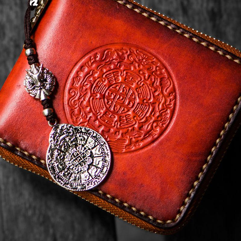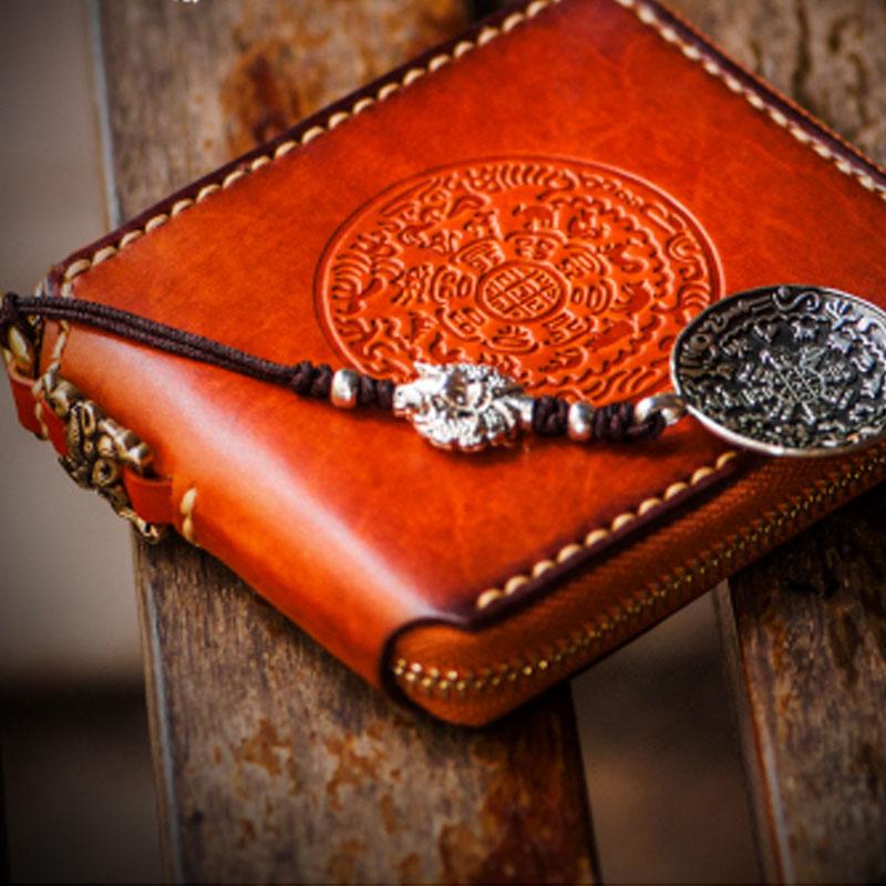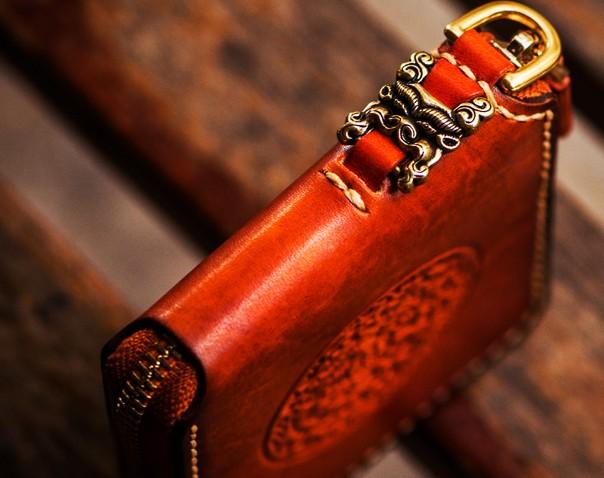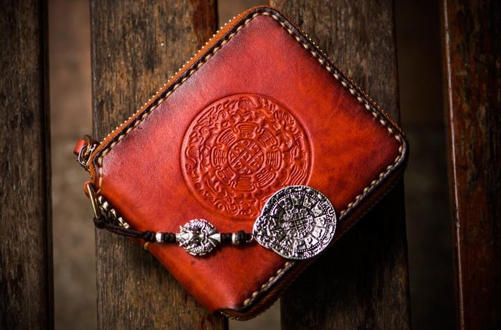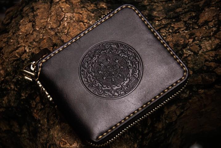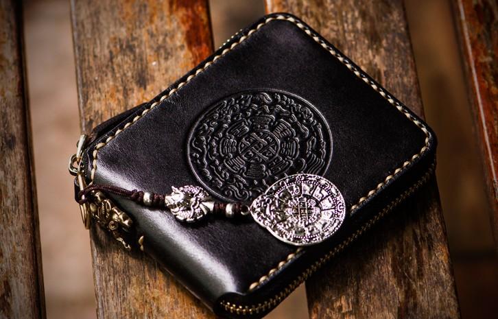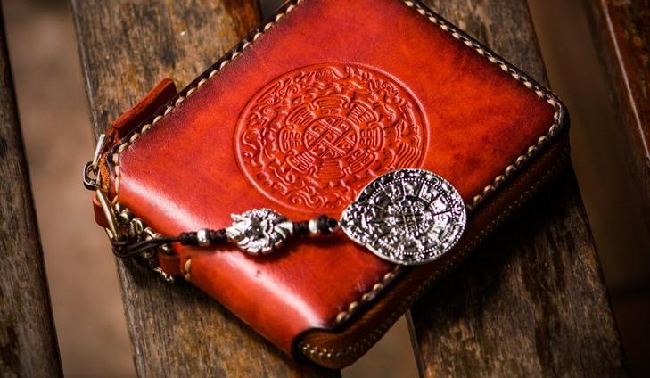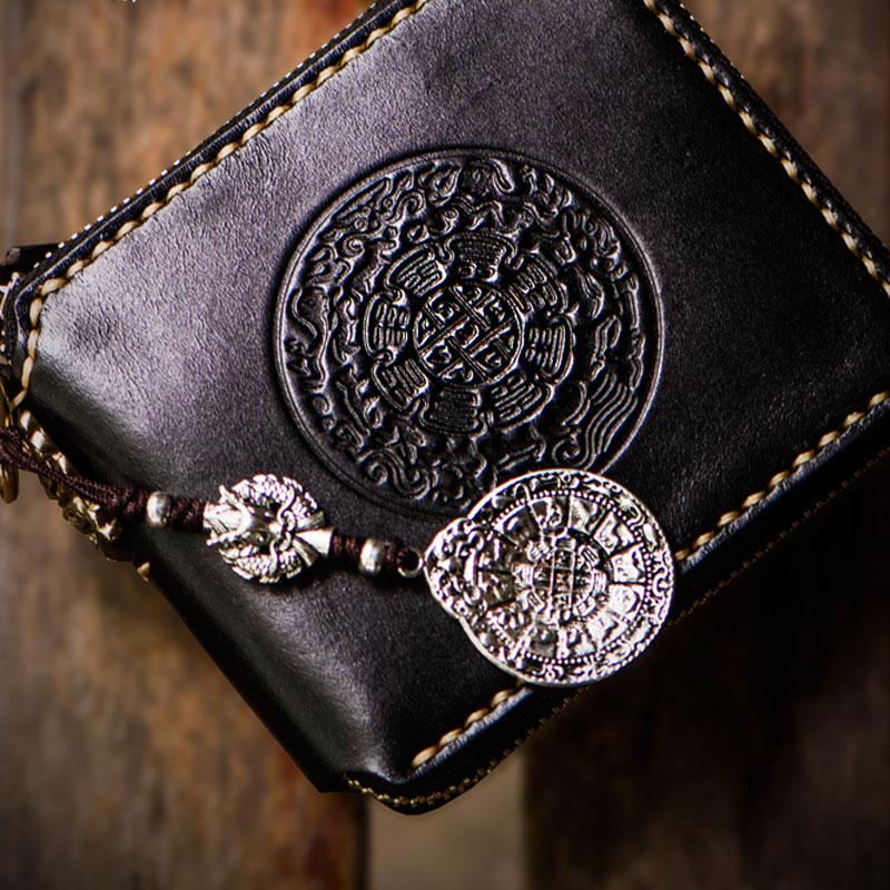 Design: Handmade Leather Tibetan Tooled Mens billfold Wallet Cool Chain Wallet Biker Wallet for Men