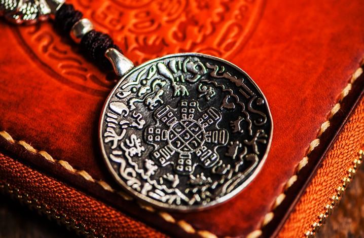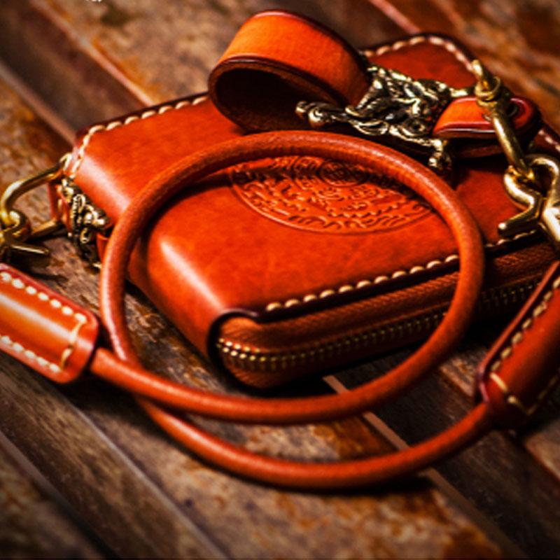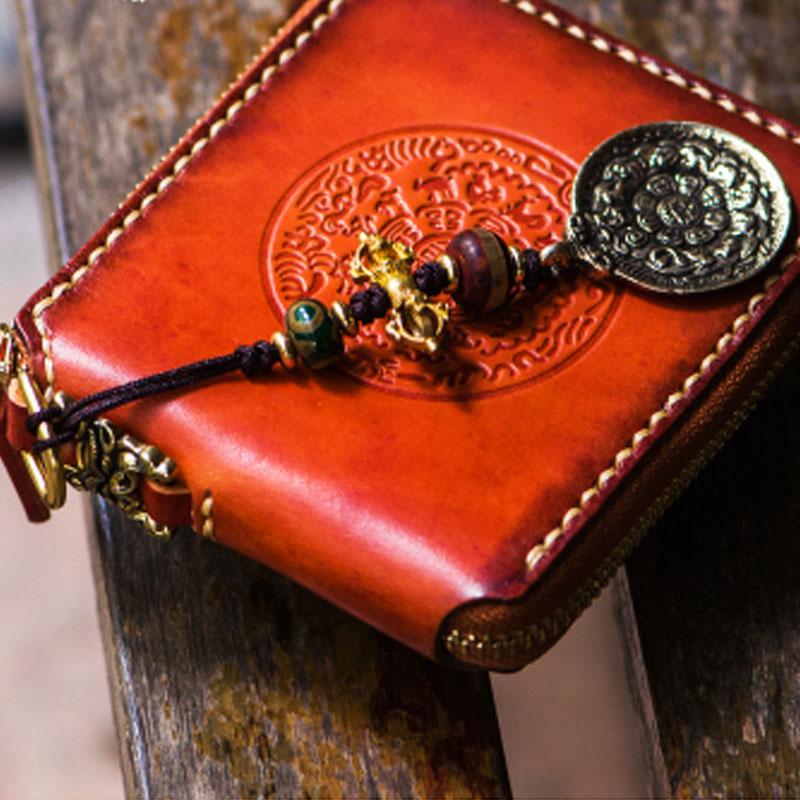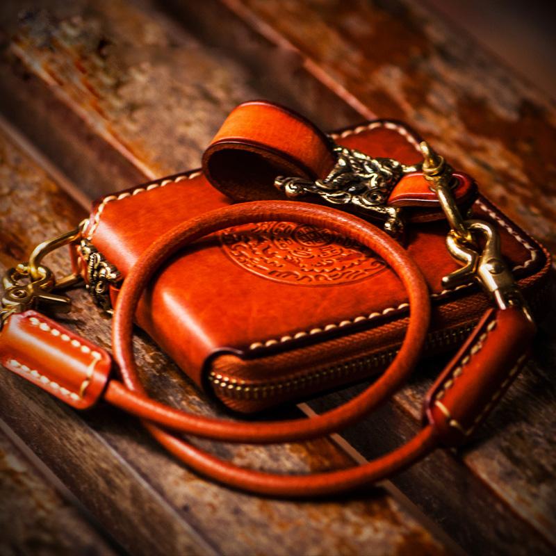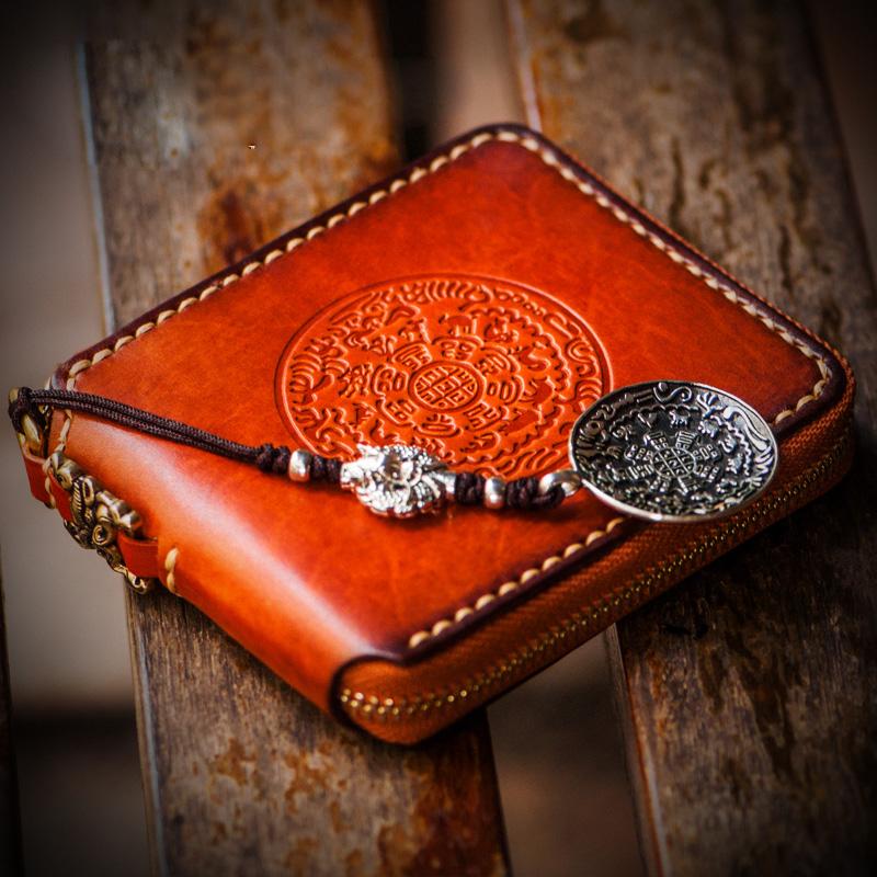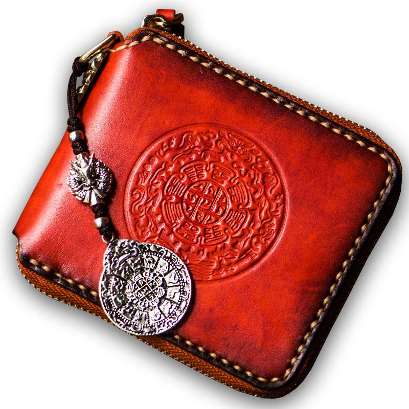 Design: Handmade Leather Tibetan Tooled Mens billfold Wallet Cool Chain Wallet Biker Wallet for Men