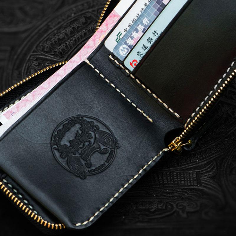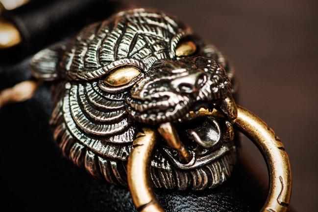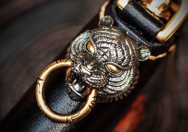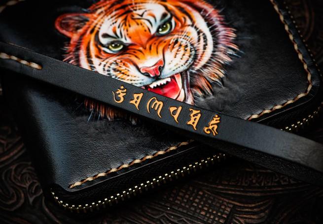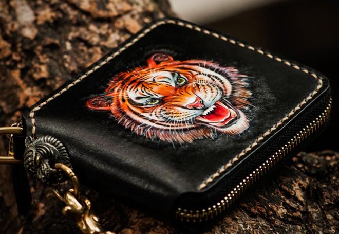 Design: Handmade Leather Tiger Tooled Mens billfold Wallet Cool Clutch Wristlet Bag Chain Wallet Biker Wallet for Men