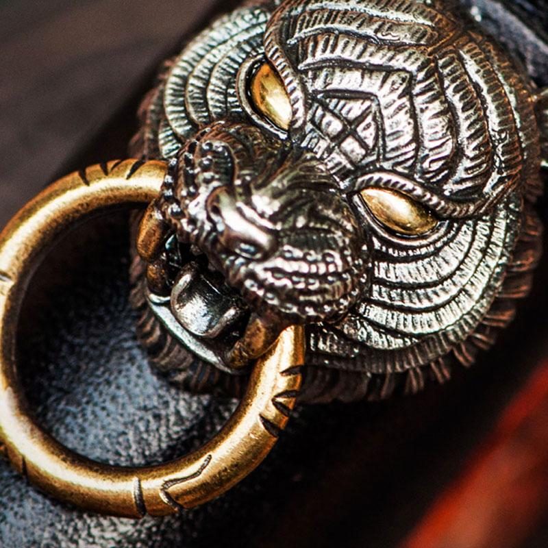 Style: Handmade Leather Tiger Tooled Mens billfold Wallet Cool Clutch Wristlet Bag Chain Wallet Biker Wallet for Men