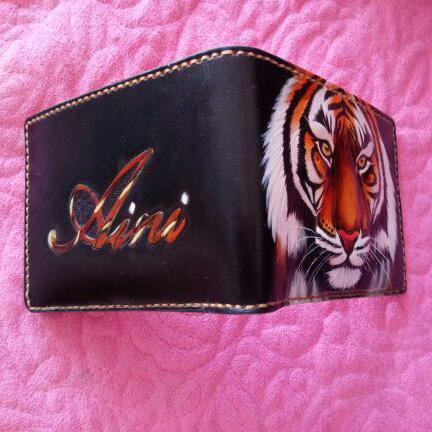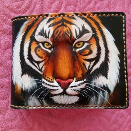 Design: Handmade Leather Tiger Tooled Mens billfold Wallet Cool Leather Wallet Slim Wallet for Men