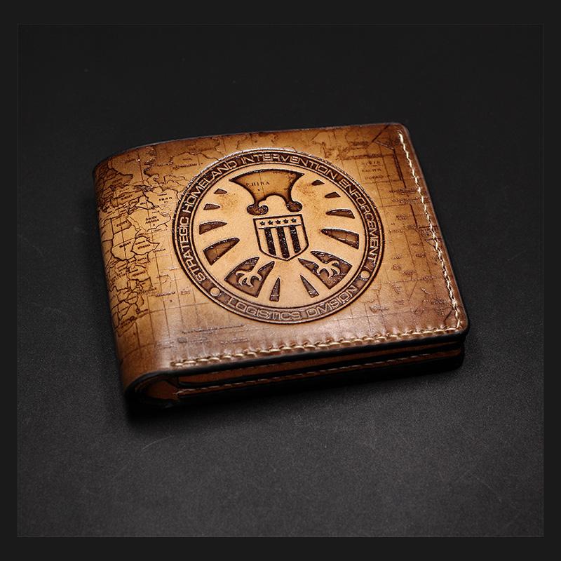 Style: Handmade Leather Tooled Agents of S.H.I.E.L.D. Mens billfold Wallet Cool Leather Wallet Slim Wallet for Men