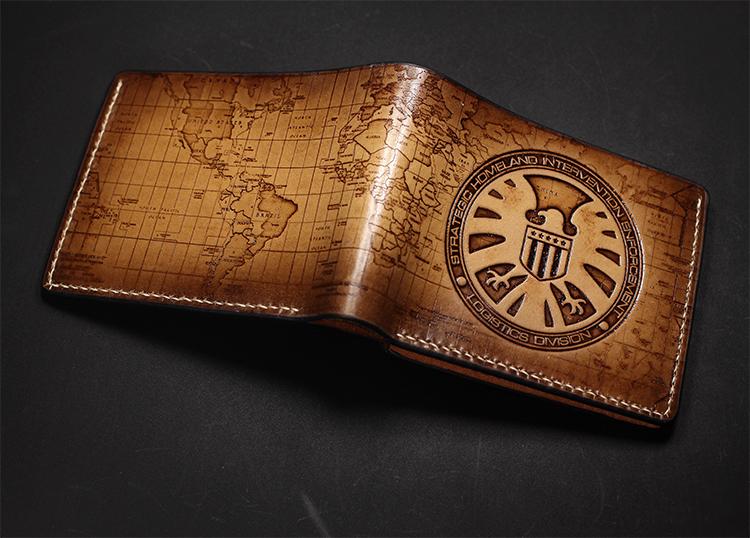 Design: Handmade Leather Tooled Agents of S.H.I.E.L.D. Mens billfold Wallet Cool Leather Wallet Slim Wallet for Men