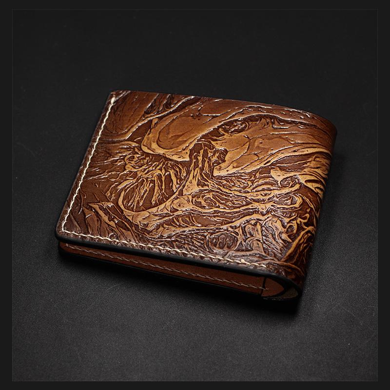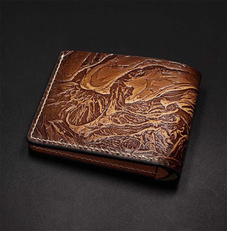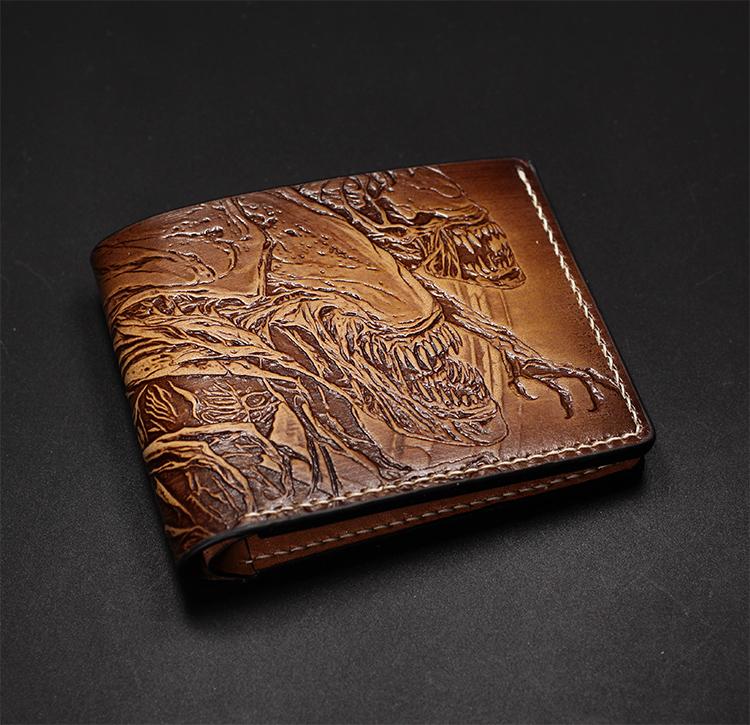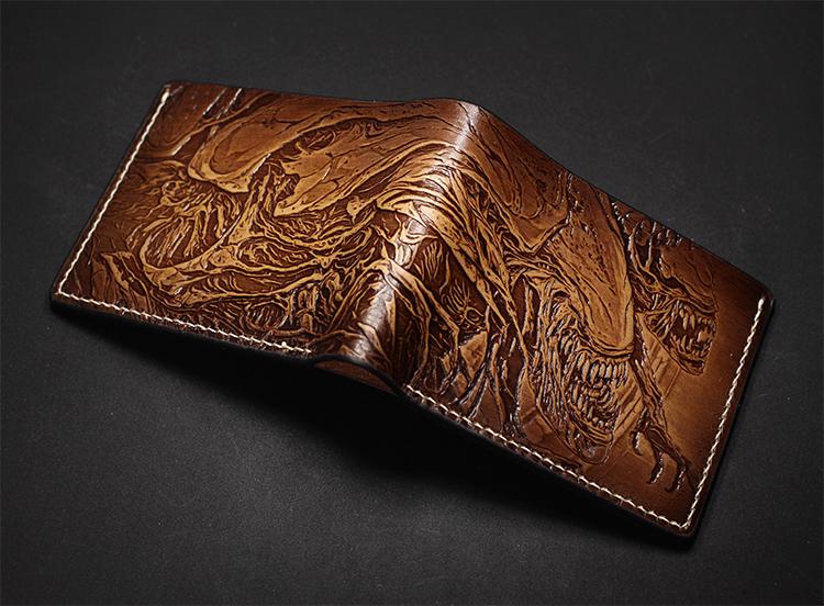Style: Handmade Leather Tooled Alien Mens billfold Wallet Cool Leather Wallet Slim Wallet for Men