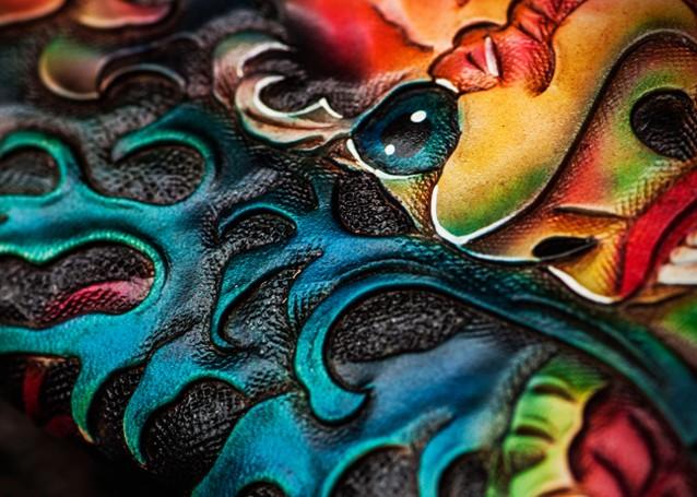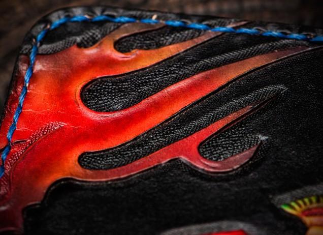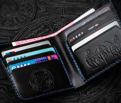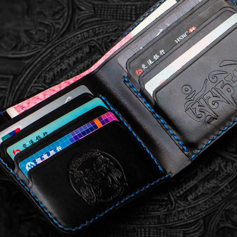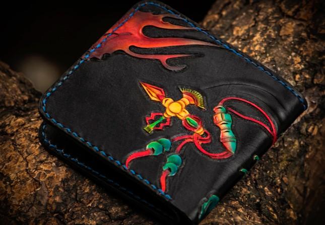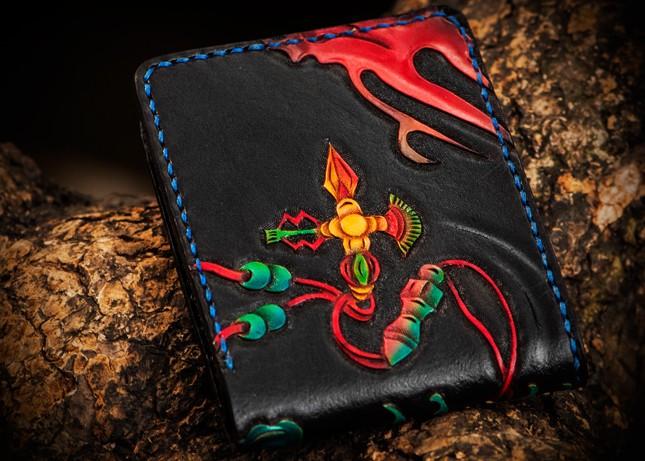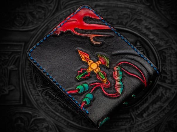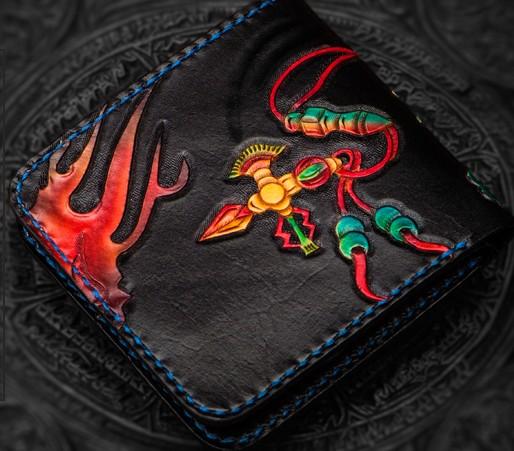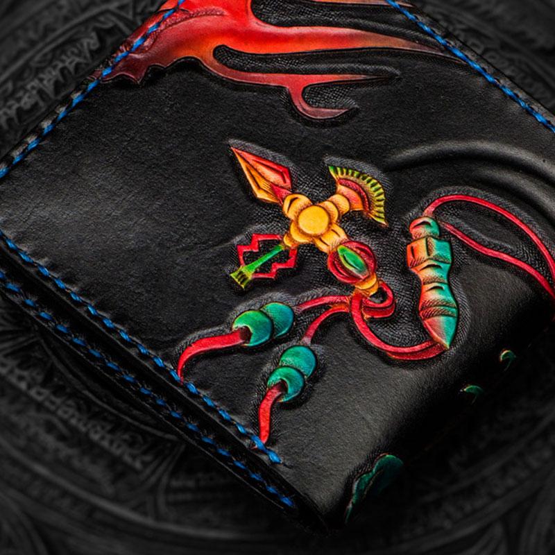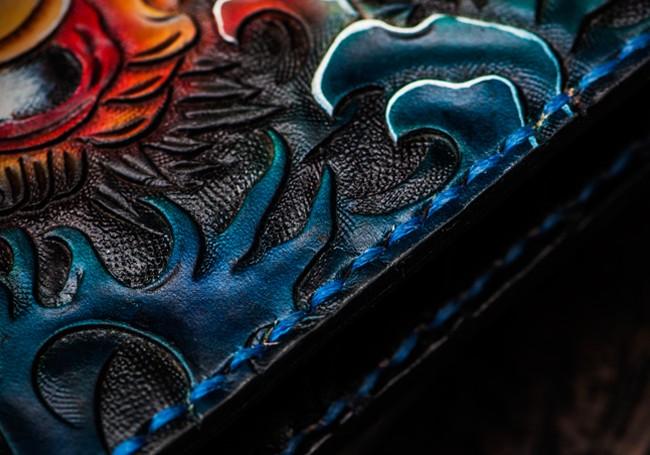 Design: Handmade Leather Tooled Chinese Lion Mens billfold Wallet Cool Slim Wallet Biker Wallet for Men