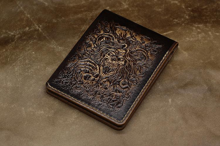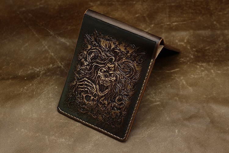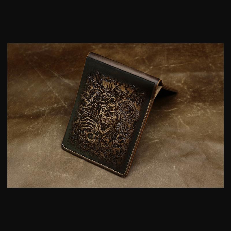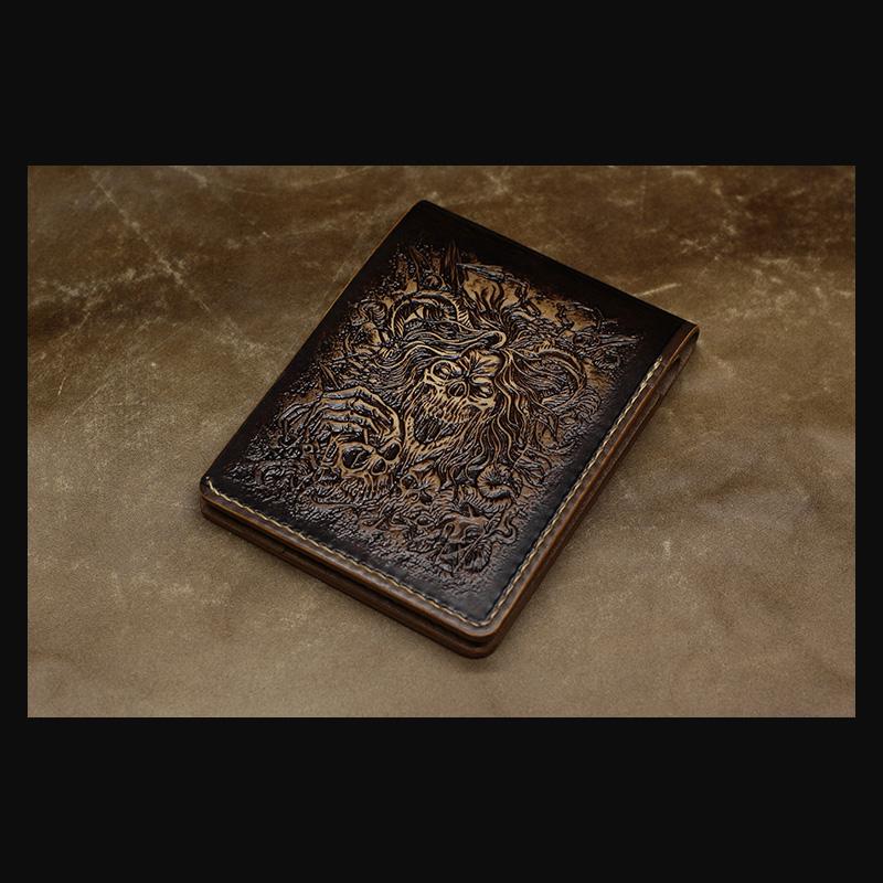 Style: Handmade Leather Tooled Death Metal Mens billfold Wallet Cool Leather Wallet Slim Wallet for Men