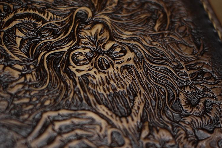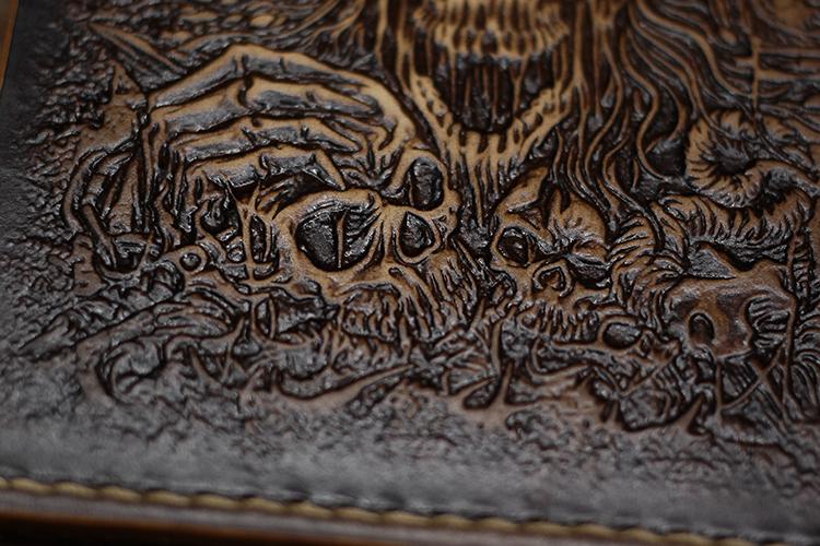 Design: Handmade Leather Tooled Death Metal Mens billfold Wallet Cool Leather Wallet Slim Wallet for Men